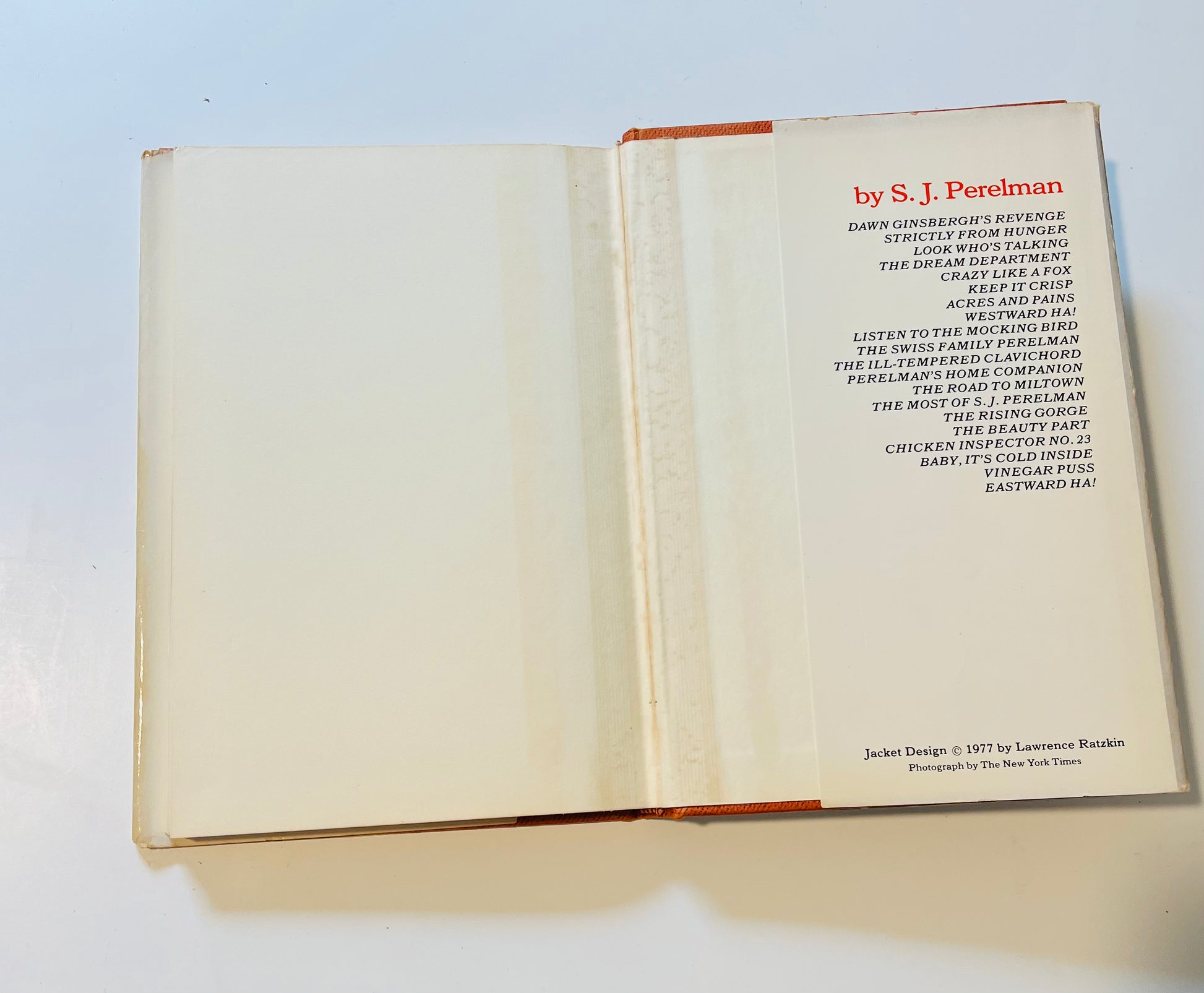S.J. Perelman. First edition. Dust Jacket: Very Good. An unclipped jacket with original price of $7.95 still intact. Jacket design by Lawrence Ratzkin and illustrations by Al Hirschfeld. Jacket has foxing and some wear and tear including chipping and missing pieces on top/bottom of spine. Hardcover: Very Good+ New York: Simon and Shuster, 1977. Orange cloth with black design on cover and black lettering on spine. No writing or markings in the book, 126 pp.