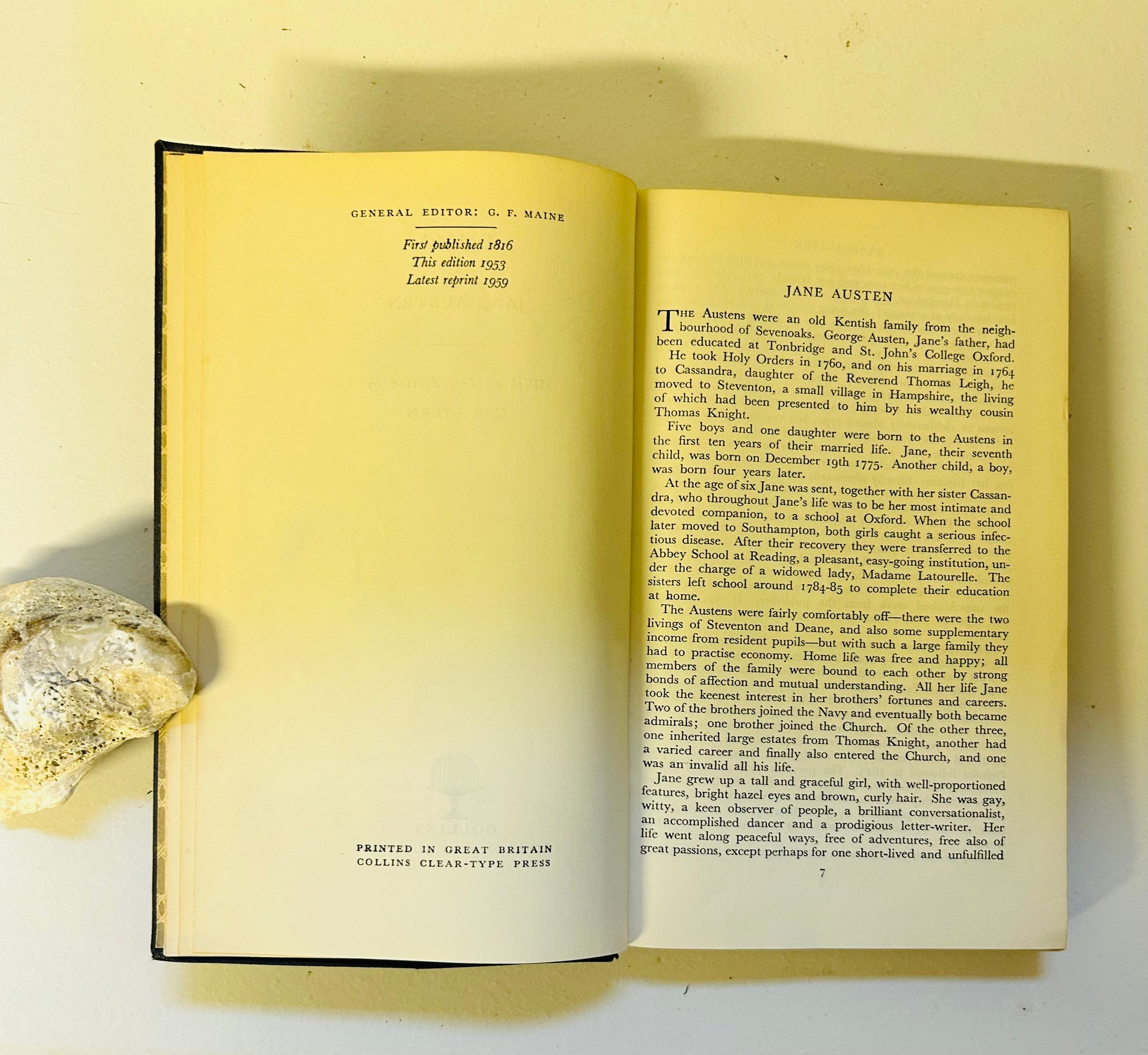 Jane Austen. Later printing. London: Collins, 1959. Softcover (blue soft leather). Introduction written by G.B. Stern. No writing or markings in the book, well preserved.