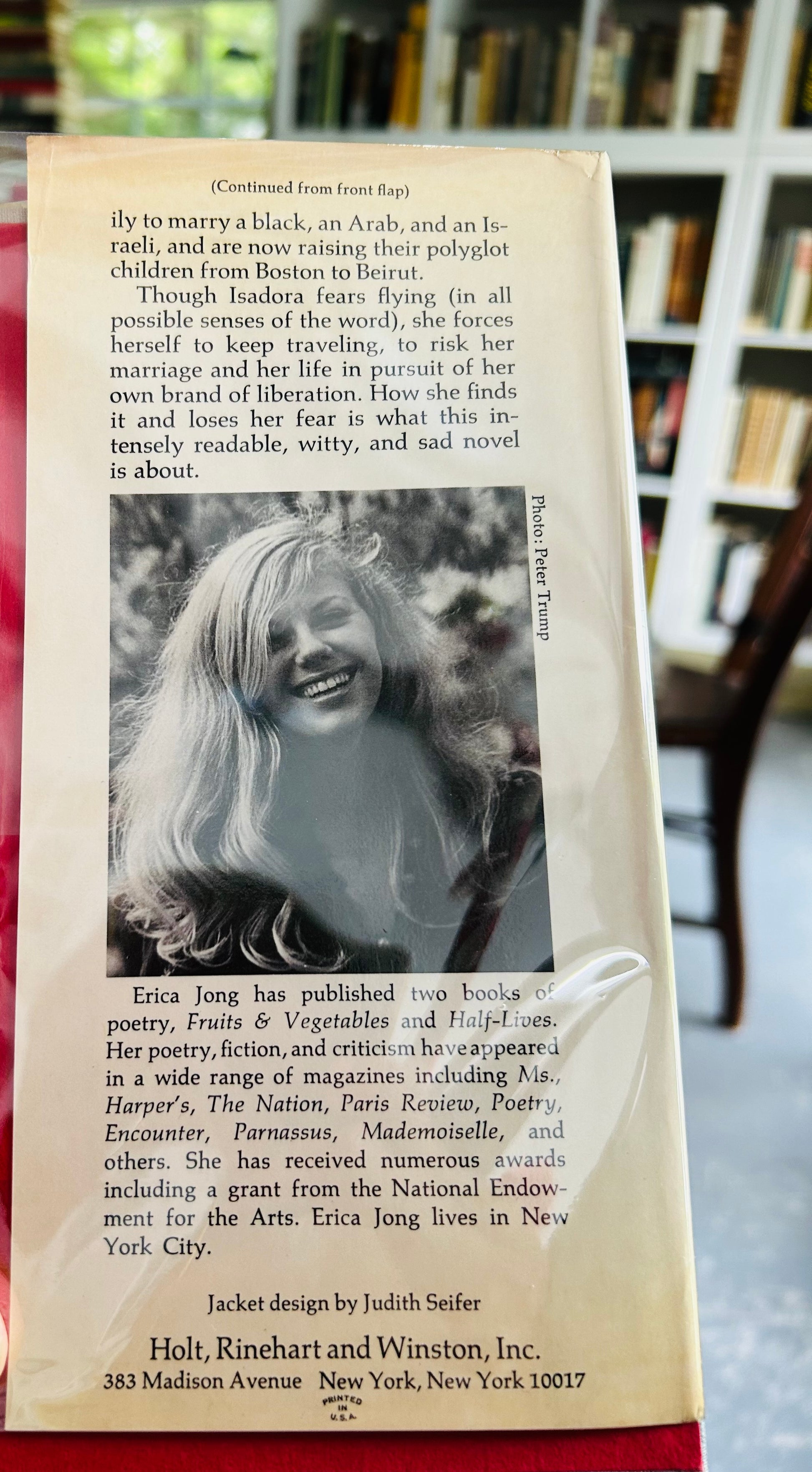 Erica Jong. Stated first edition, first printing. Advanced Readers Copy (ARC). With laid in review slip. New York: Holt, Rinehart and Winston, 1973. Both unclipoed dust jacket (in a mylar wrapper) and hardcover are in Very Good+ condition. Stunning dust jacket designed by Judith Seifer. The only blemish regarding the jacket, a small piece is missing on lower backside. No writing or markings found in this well-preserved edition, 340 pp.