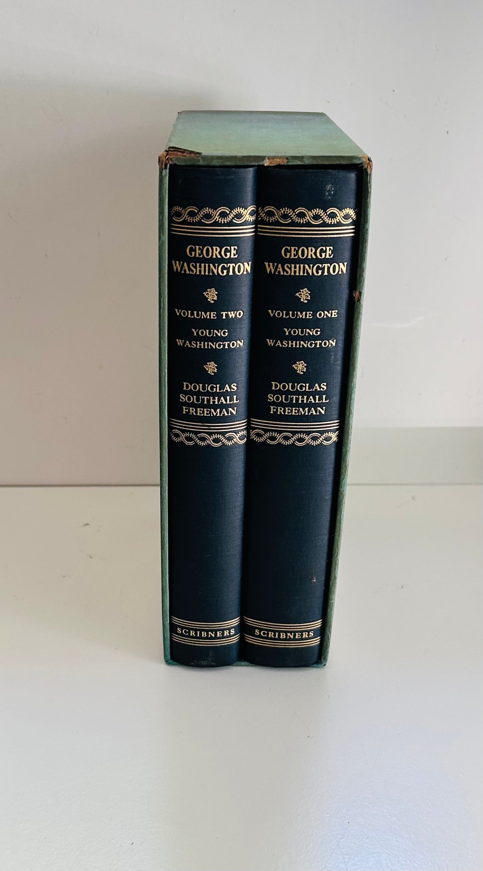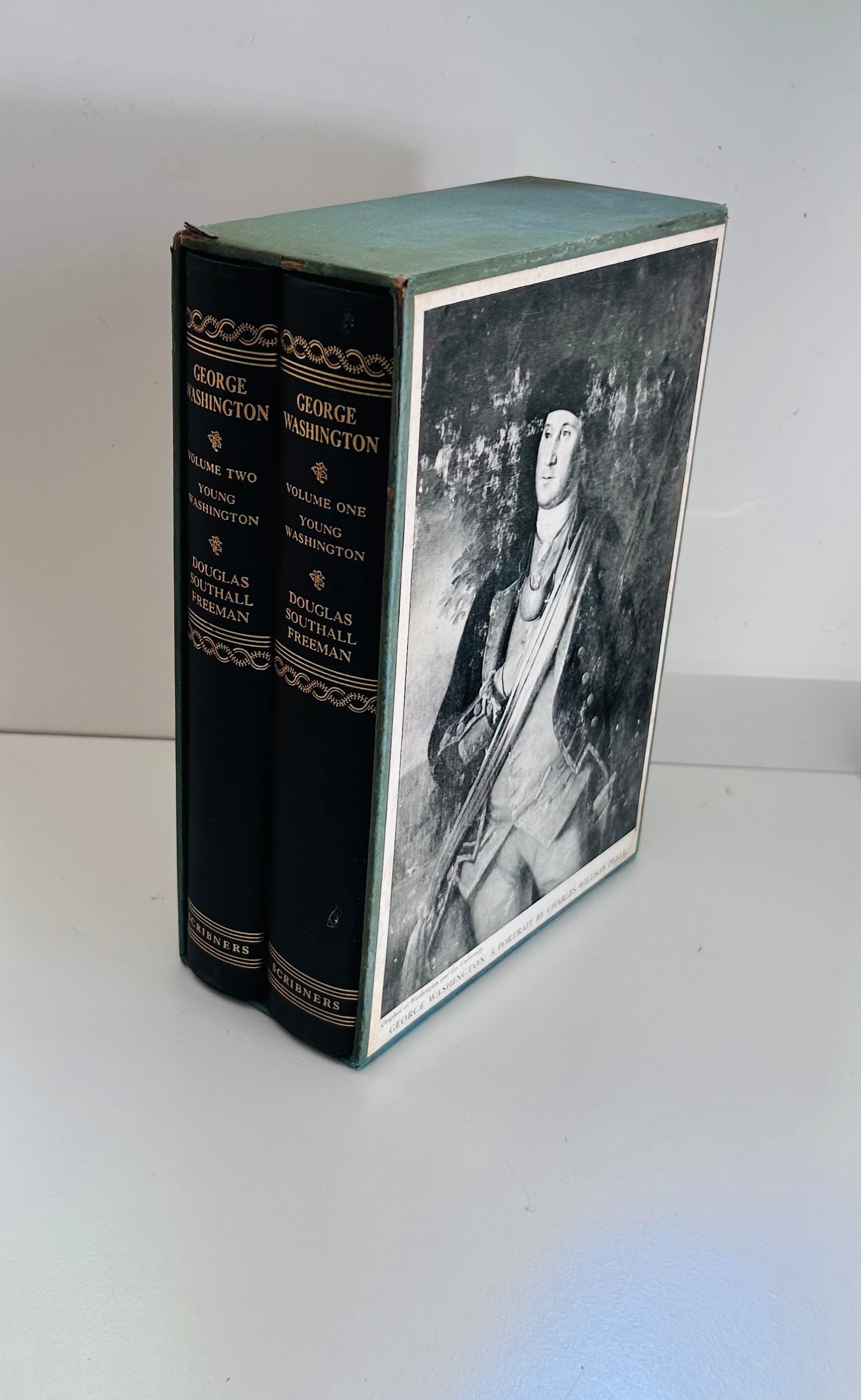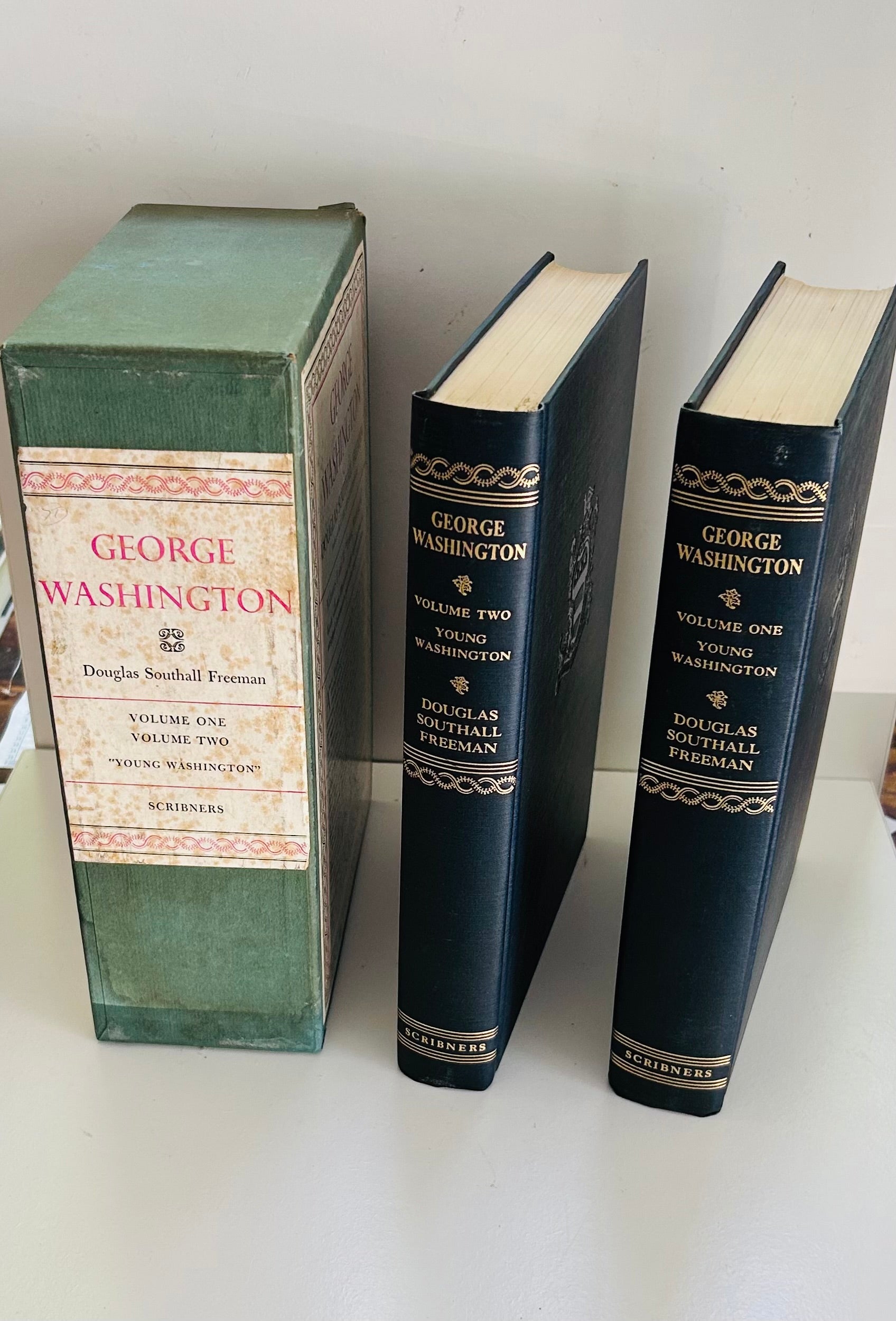 A handsome boxed set of George Washington by Pulitzer Prize-winning historian Douglas Southall Freeman, published by Charles Scribner’s Sons in 1948. This is the first edition of the two-volume abridged version of Freeman’s seven-volume masterwork, specially edited for broader readership.