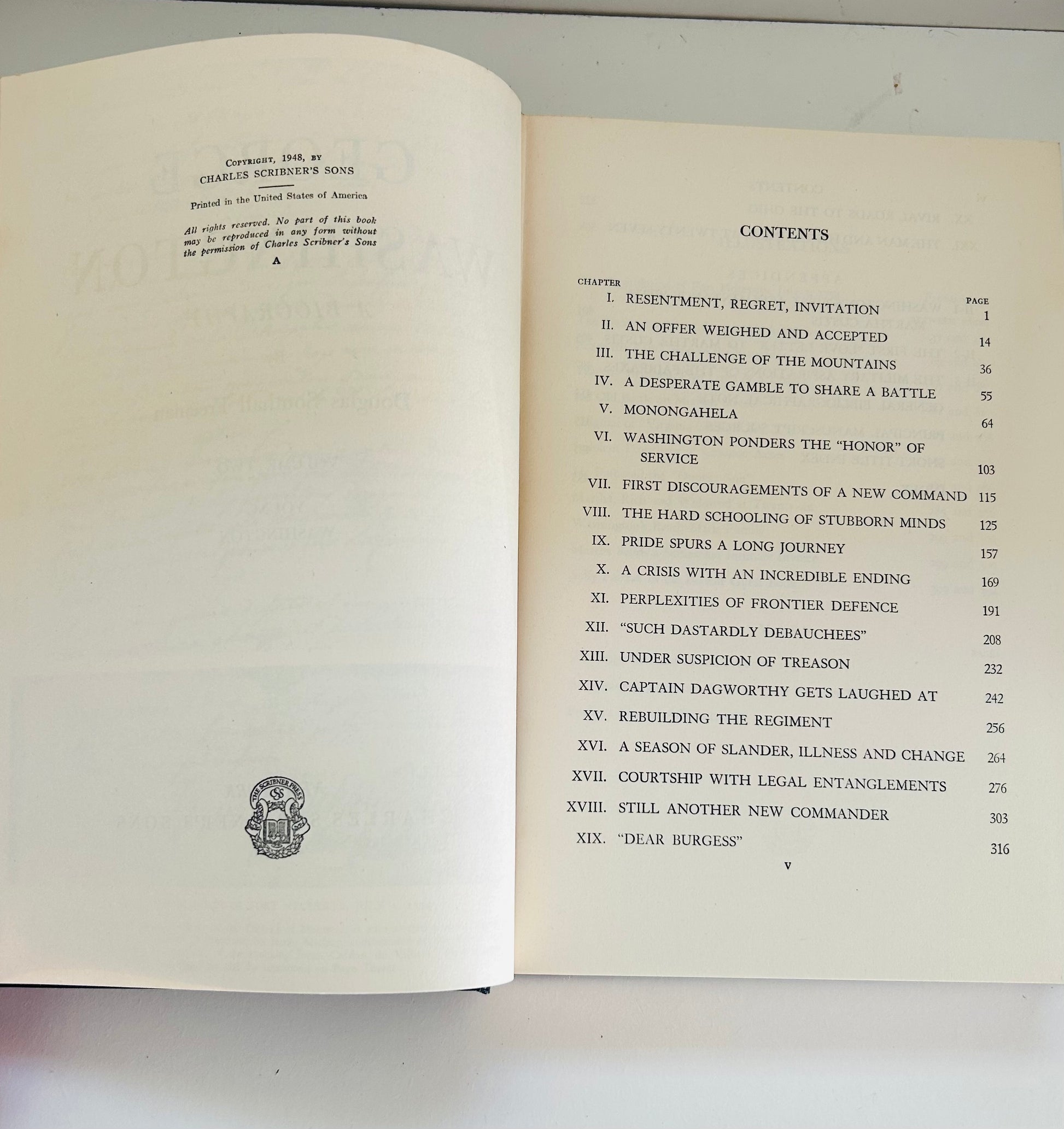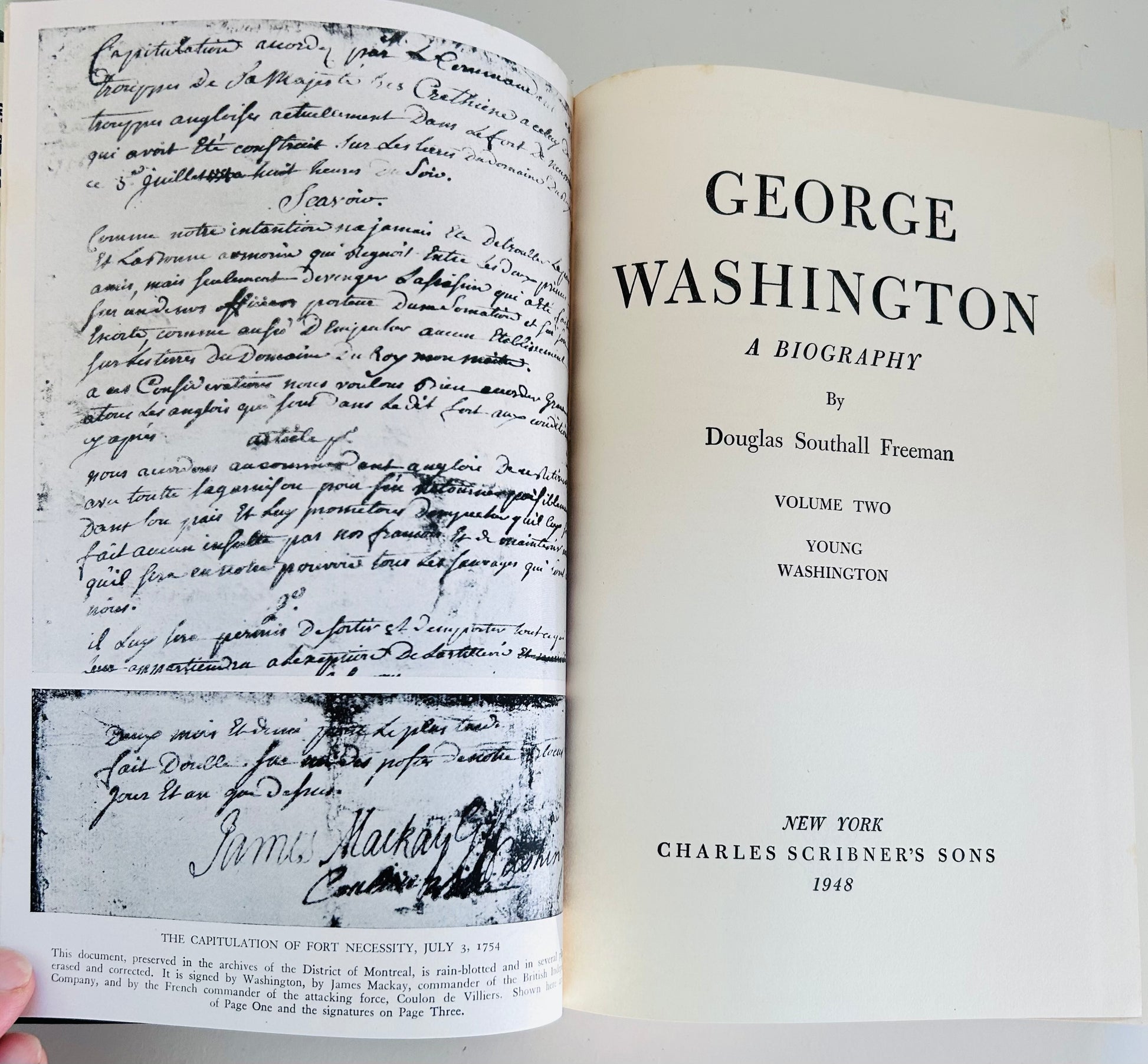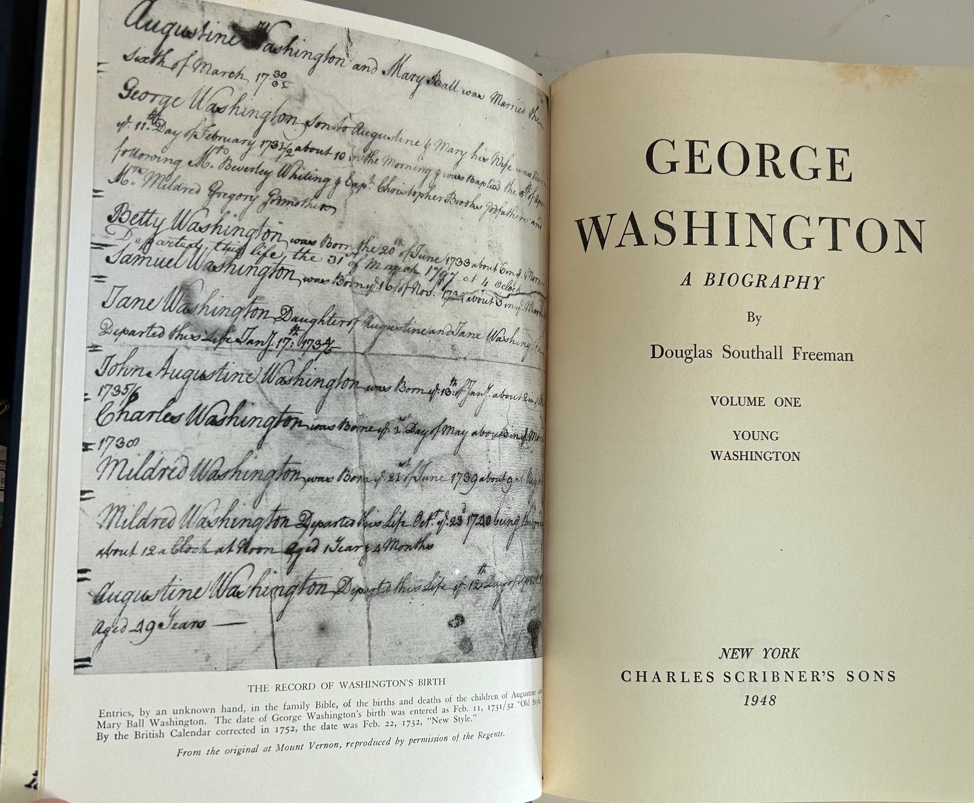A handsome boxed set of George Washington by Pulitzer Prize-winning historian Douglas Southall Freeman, published by Charles Scribner’s Sons in 1948. This is the first edition of the two-volume abridged version of Freeman’s seven-volume masterwork, specially edited for broader readership.
