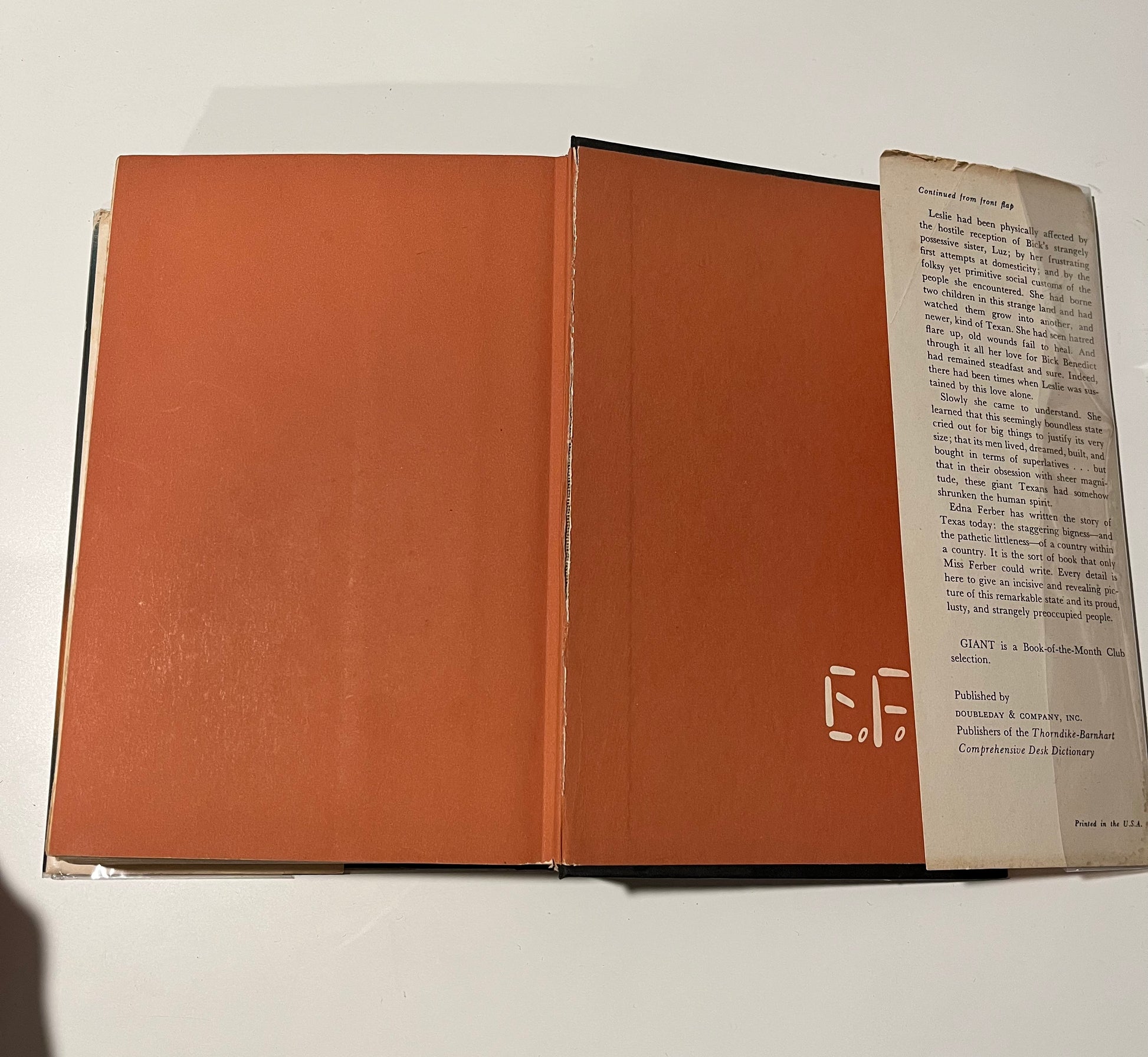 The bestselling novel about Texas life in the 1950's that was turned into a blockbuster movie. The American novelist Edna Ferber (1885-1968) had many of her works made into plays and movies, including this one in 1956-directed by George Stevens and with a rather incredible cast including Elizabeth Taylor and James Dean, Rock Hudson, Carroll Baker, and Dennis Hopper. James Dean actually died in late production of the film and they had to use a voice over provided by Nick Adams.