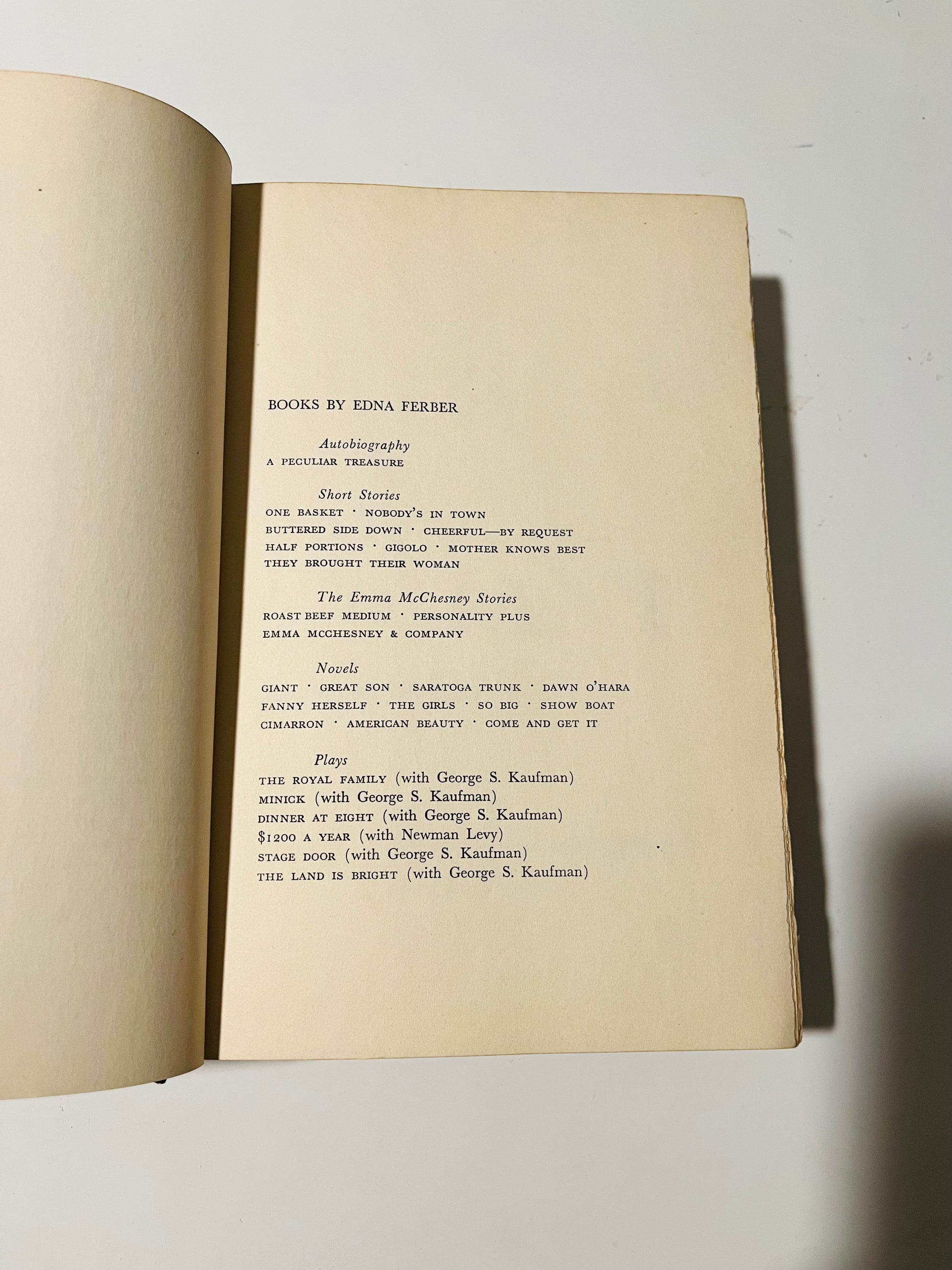 Edna Ferber. First edition (stated). Dust Jacket: Very Good. An unclipped jacket with original price $3.95 on inside flap. Author photo by Philippe Holtzman and jacket designed by Fred McCarroll. Chipping on edges of jacket with two small pieces missing on front jacket. In mylar protective wrapper. Hardcover: Very Good+ New York: Double Day and Company, 1952. Black cloth with silver writing on spine. Green marking on inside cover. Otherwise, no markings or writing in the book, 447 pp.
