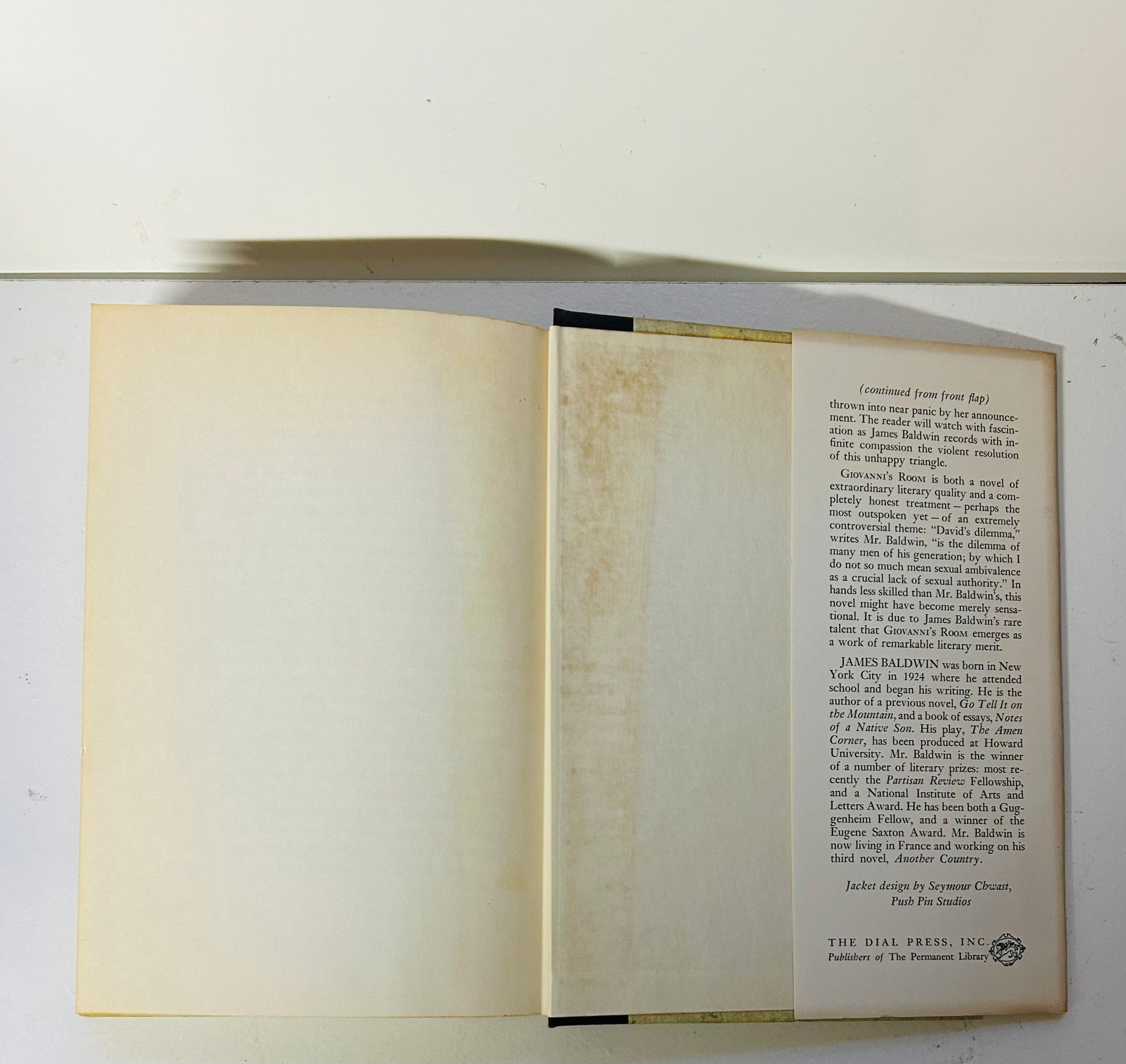 James Baldwin. First American edition, first printing. NAP. New York: The Dial Press, 1956. The unclipped dust jacket, in Very Good condition, has the original price $3.00 still intact on the inside flap. There is some minor chipping on top of spine. The hardcover, in Very Good+ condition, has former owner signature on flyleaf, otherwise no other markings or writing found in the book, 248 pp. The dust jacket was designed by Seymour Chwast. Preceeded the UK first edition.