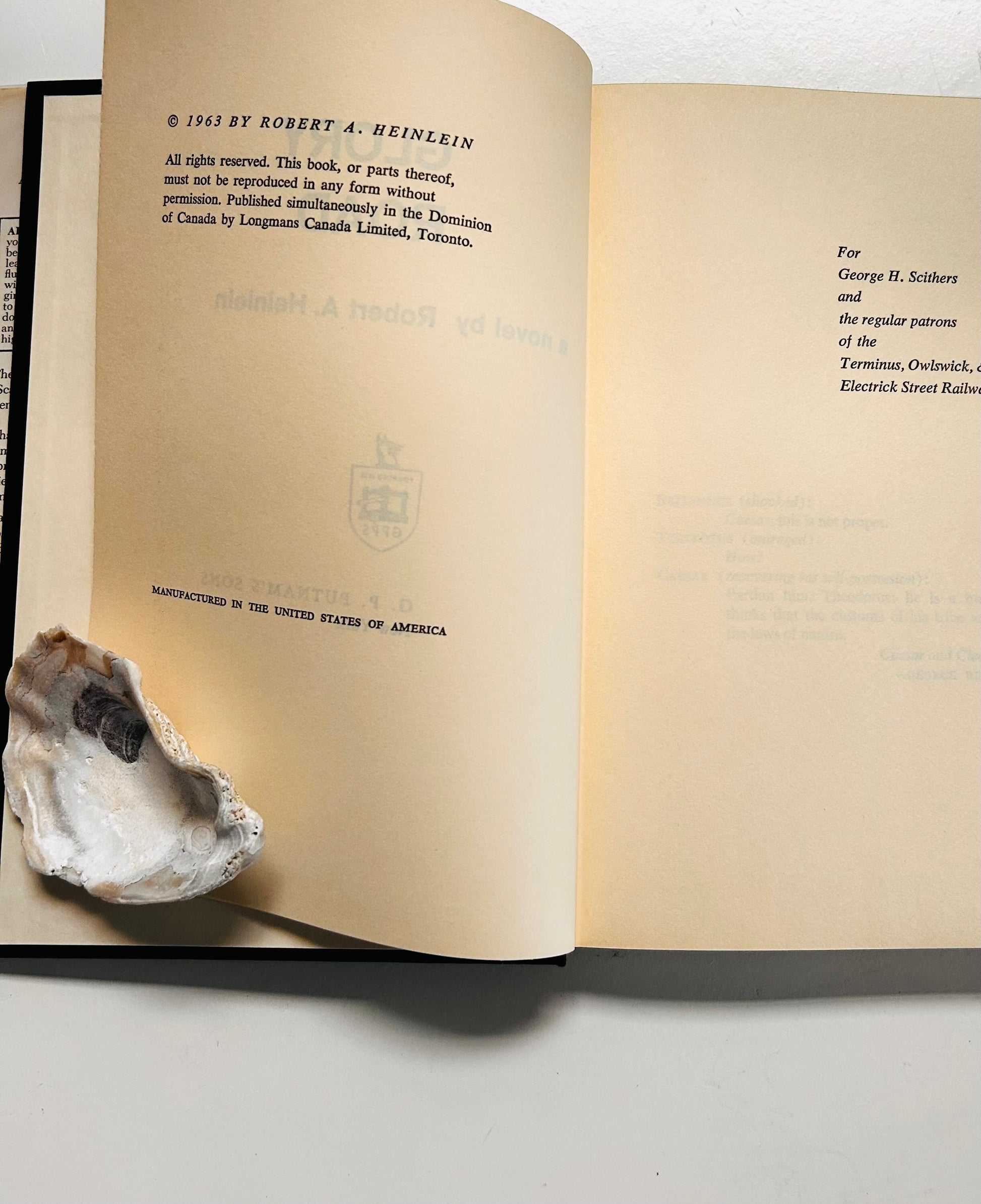 Robert A. Heinlein. Book club edition. New York: G.P. Putnam's Sons, 1963. Both unclipped dust jacket (in a mylar wrapper) and hardcover are in Near Fine condition. Jacket designed by Irv Doktor. The hardcover has no writing or markings found inside, 288 pp. This is one of the best copies, in terms of condition, that we've seen.