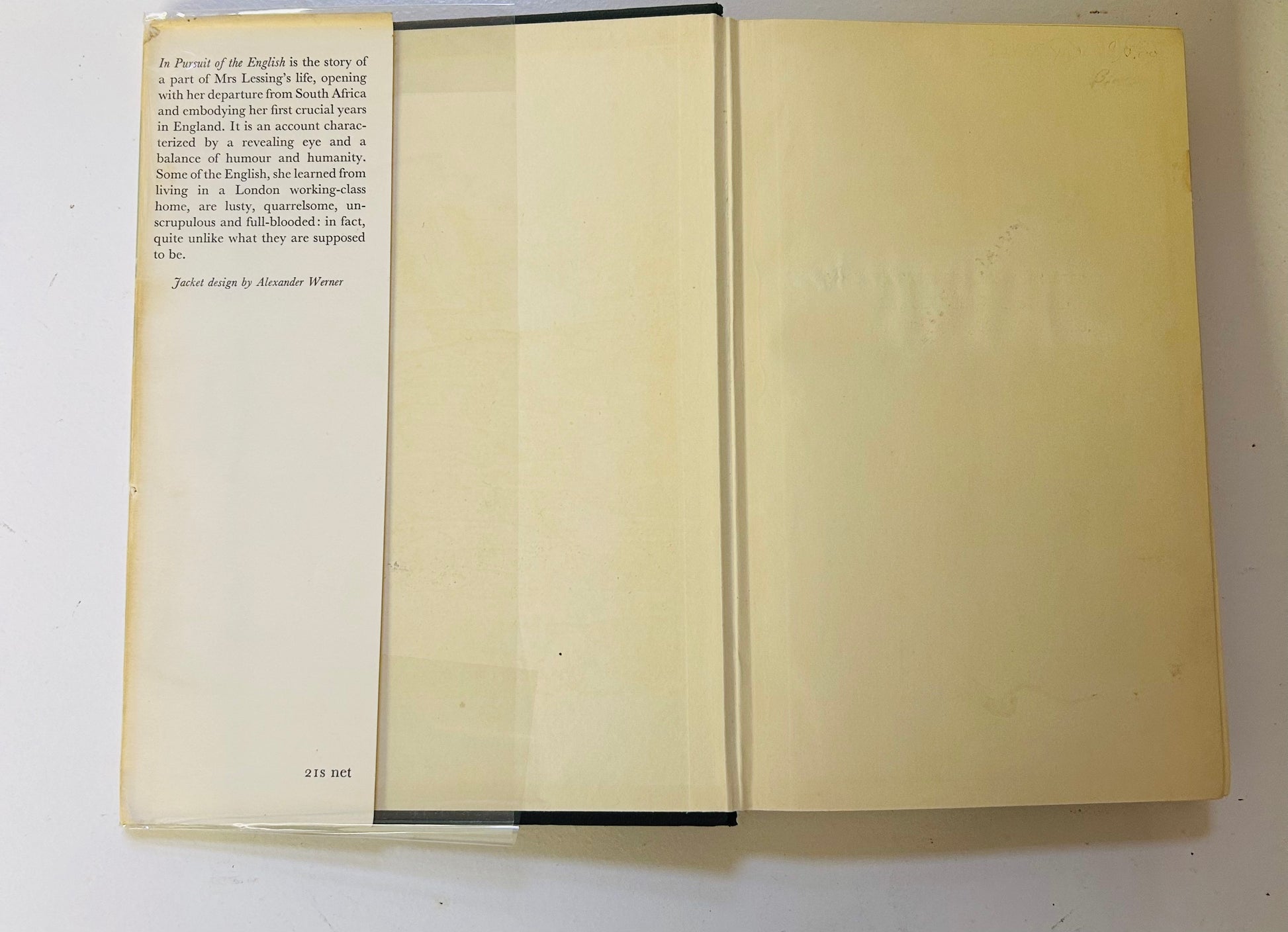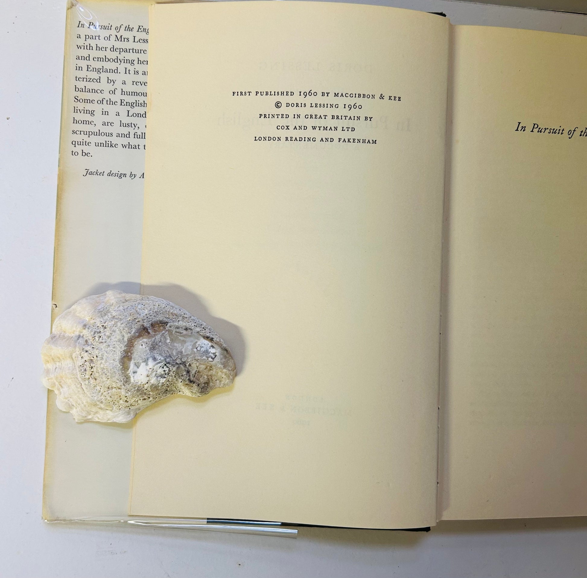 Doris Lessing. First U.K. edition, first printing. London: MacGibbon and Key, 1960. Both unclipped dust jacket, in a mylar protective wrapper, and hardcover are in Near Fine condition. Jacket design by Alexander Werner. No writing or markings in the book,