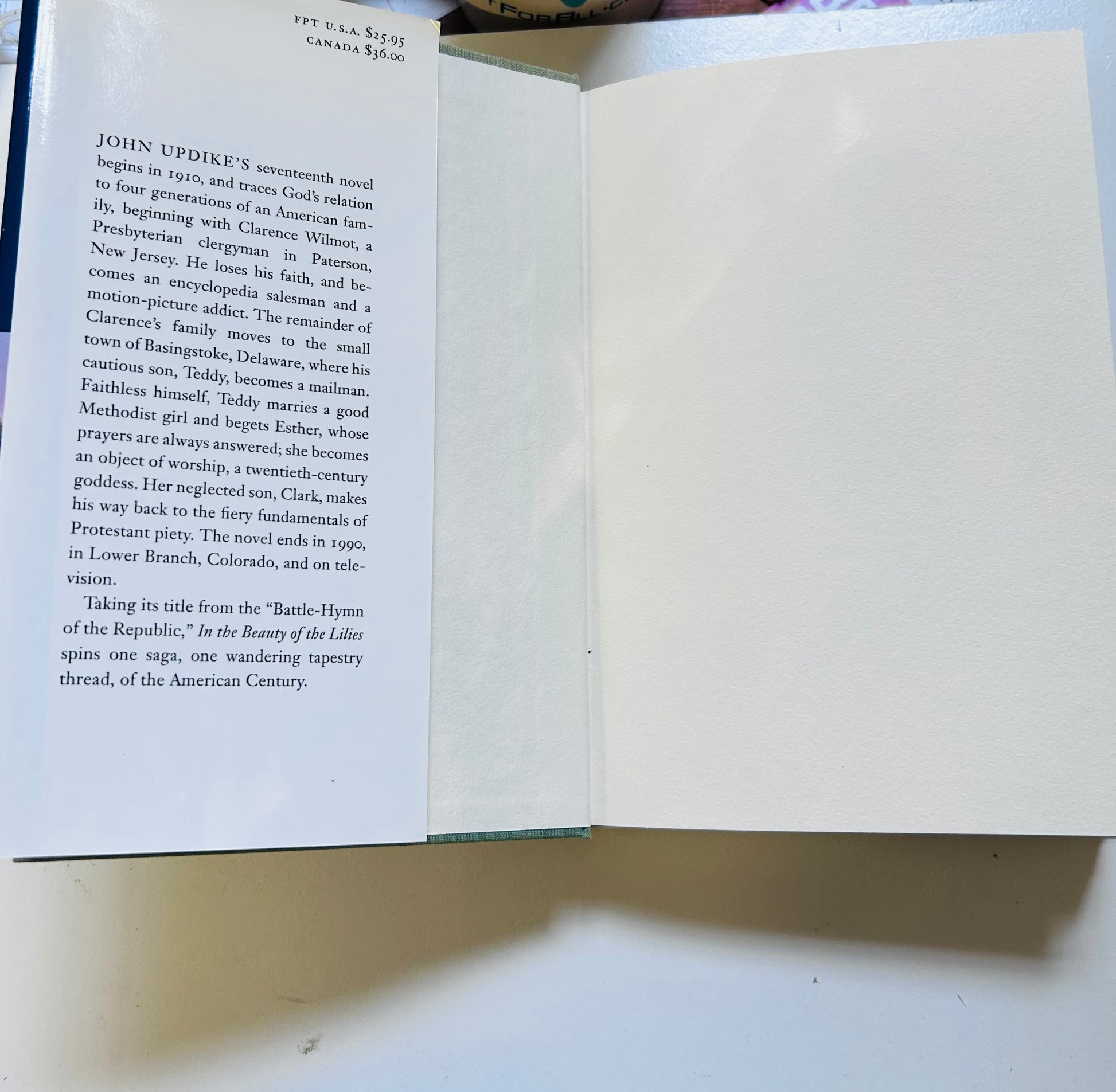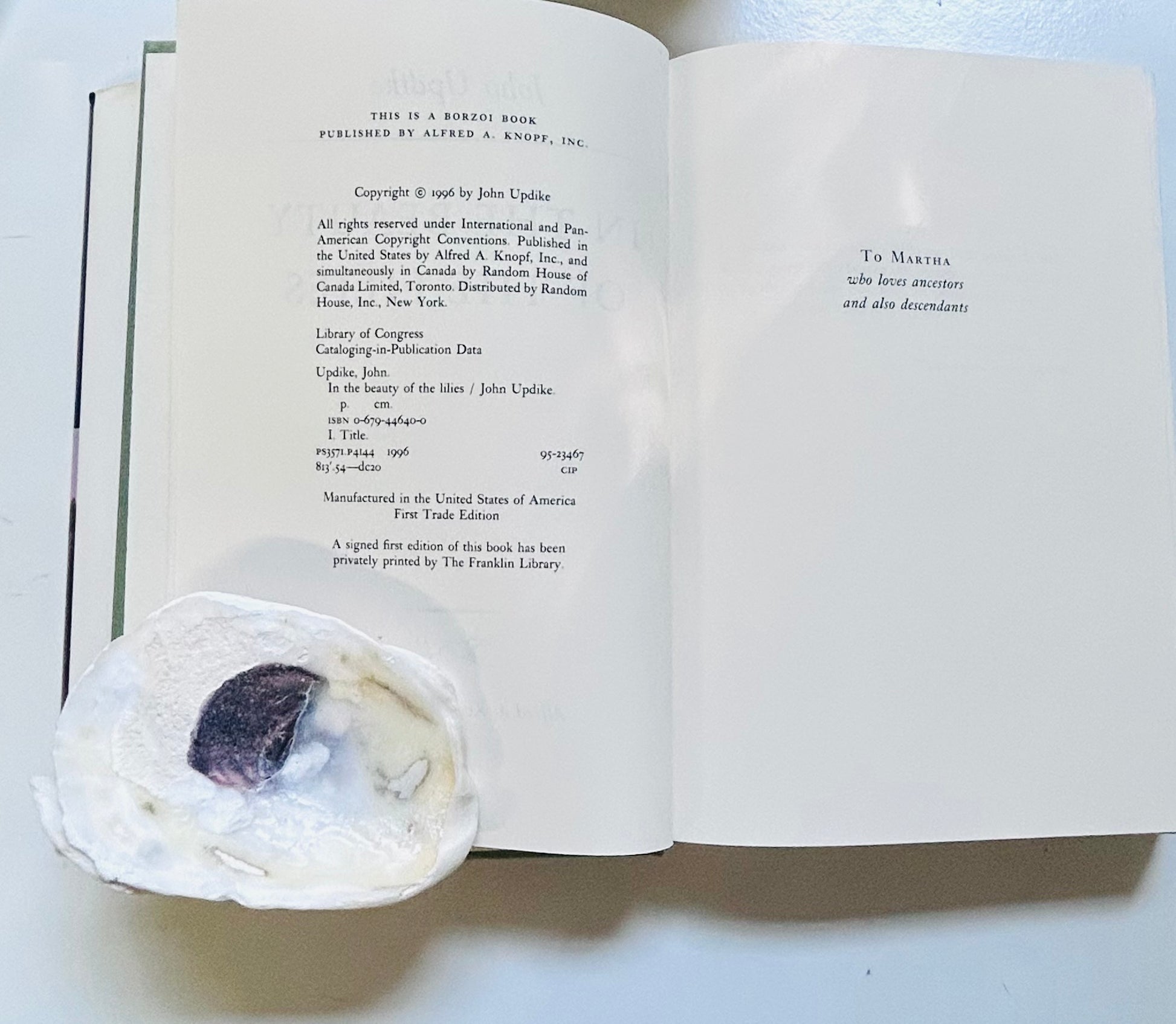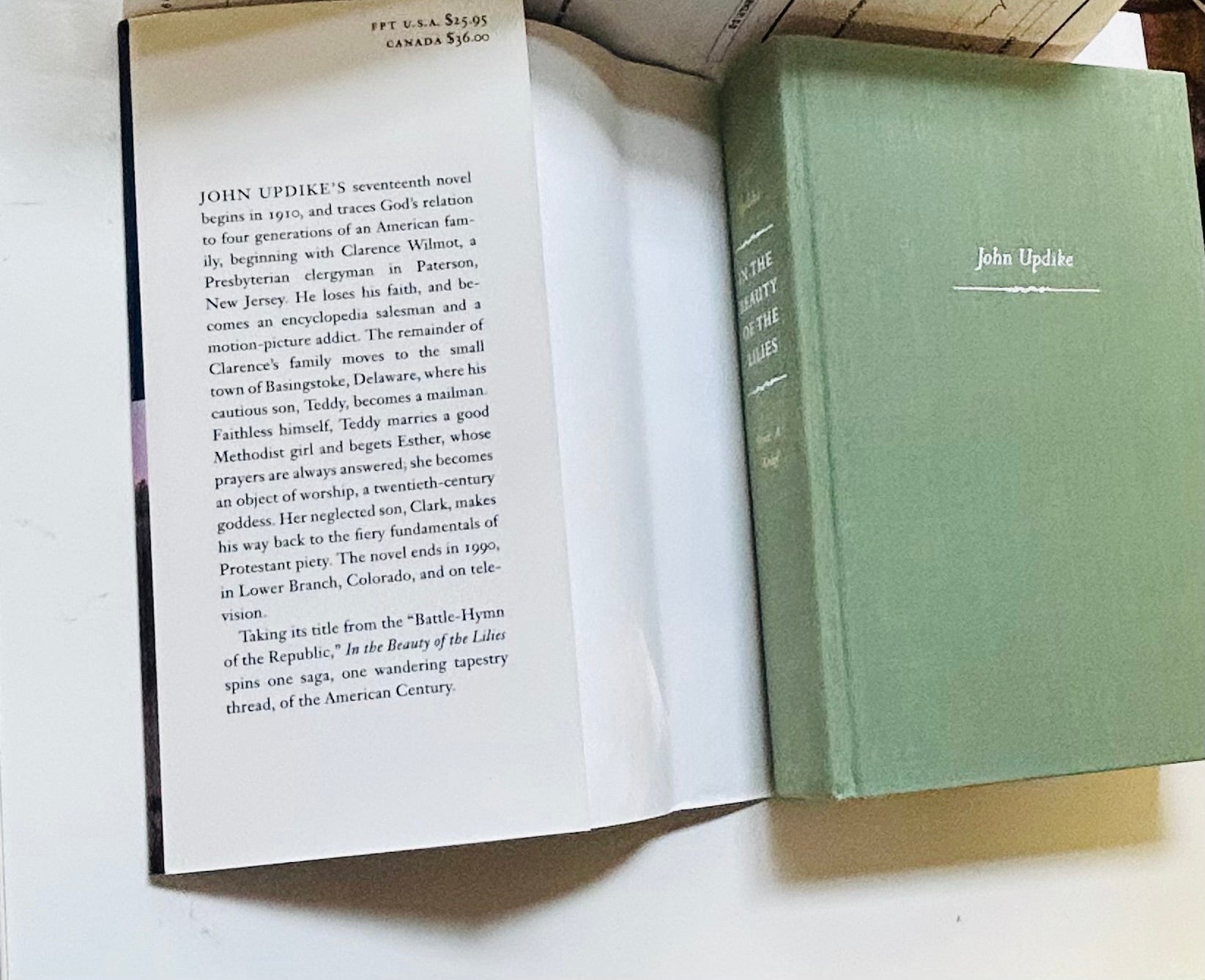 This is the stated First Trade Edition of Updike’s epic, century-spanning novel tracing four generations of American lives shaped by faith, fame, and illusion. Set in Paterson, New Jersey, and weaving through Hollywood and American suburbia, In the Beauty of the Lilies stands as one of Updike’s most ambitious works—both a family saga and a meditation on American spirituality and cultural identity.