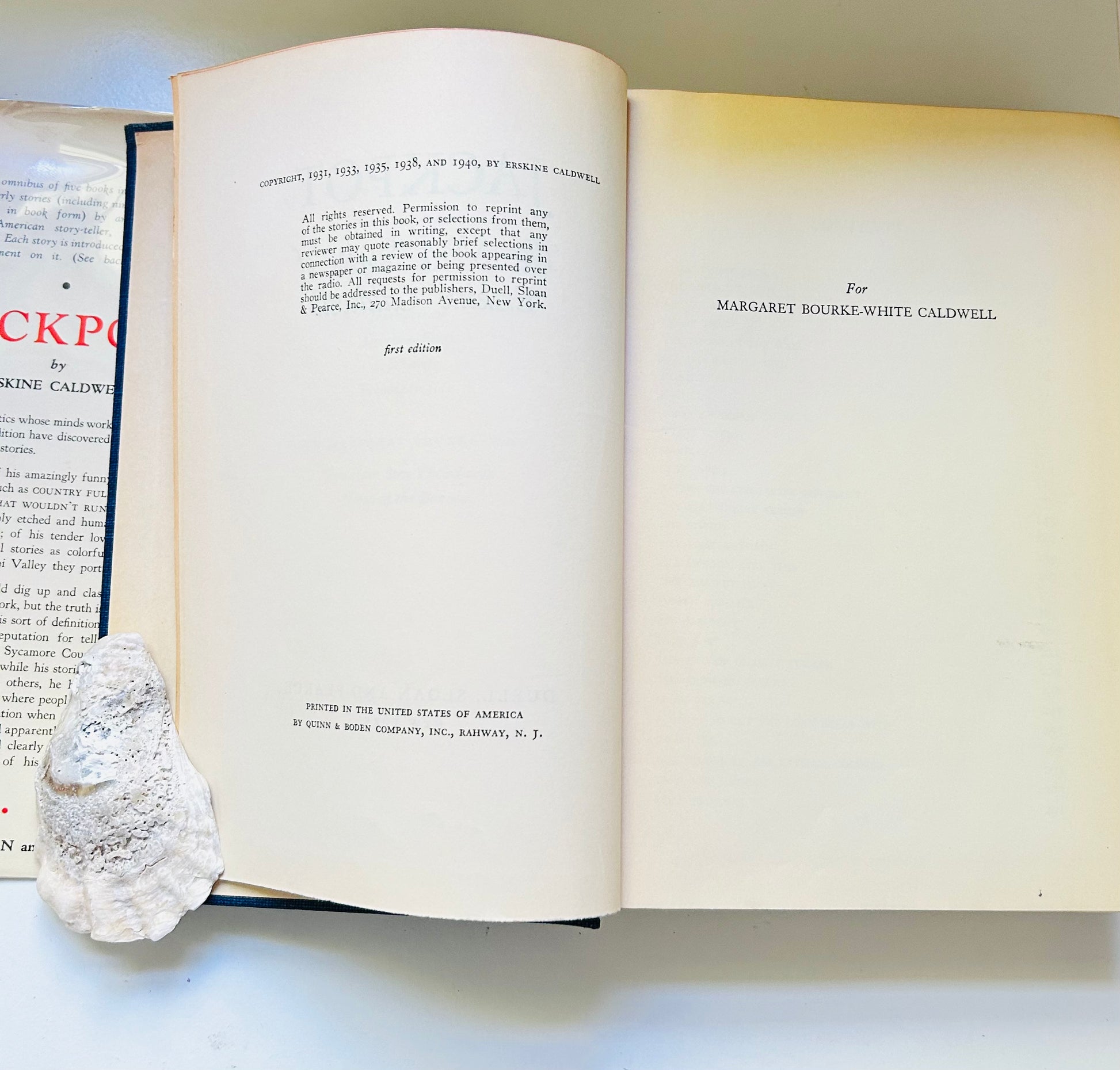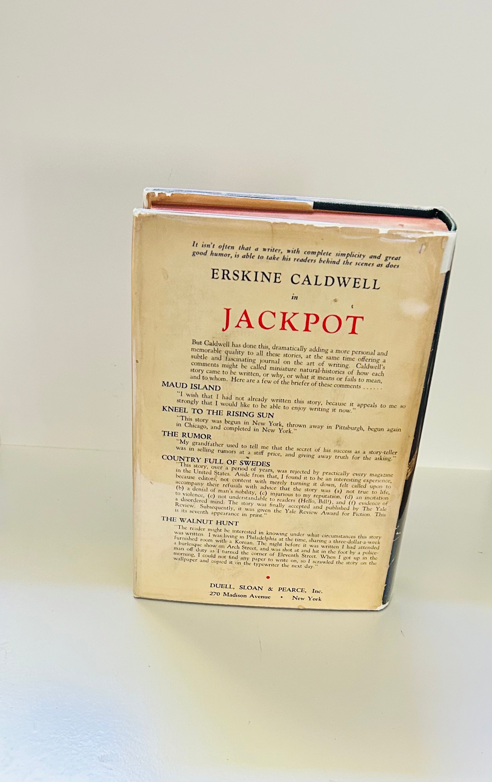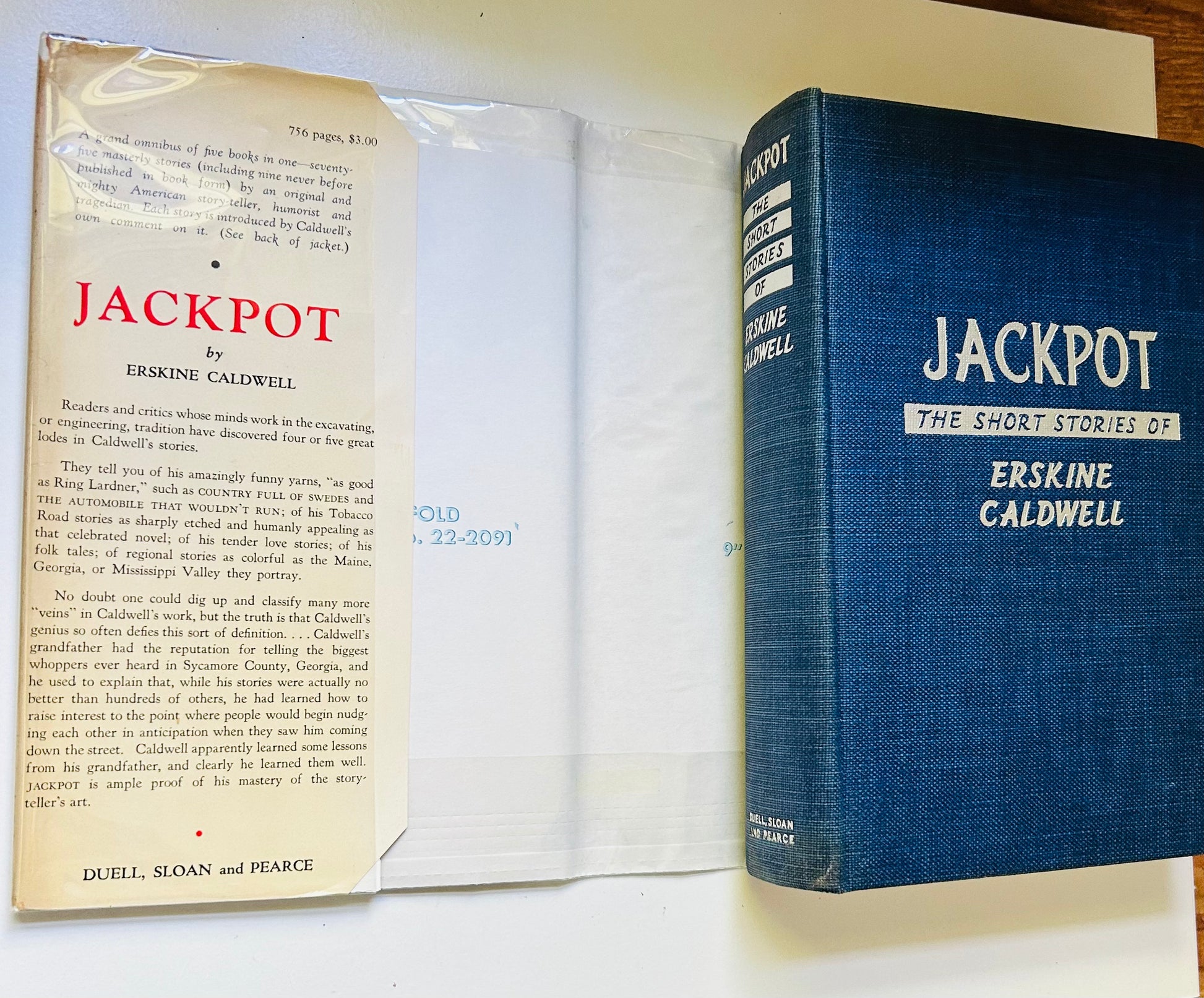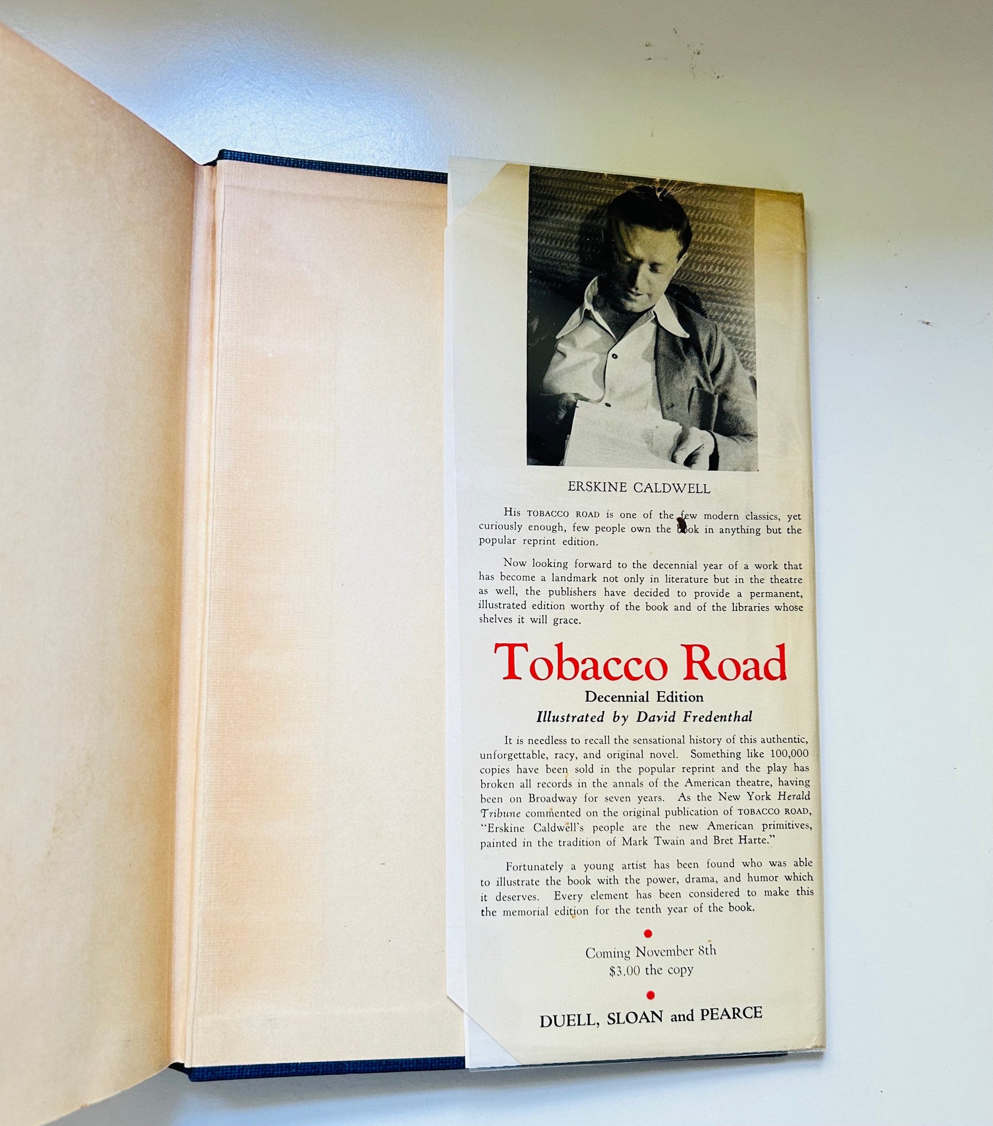 Erskine Caldwell. Statedb first edition. New York: Duell, Sloan and Pearce, 1940. Both unclipped dust jacket and hardcover are in Very Good+ condition. Jacket is in a mylar protective wrapper. No writing or markings in the book, 756 pp. The top/bottom of spine has some chipping and a small piece missing.