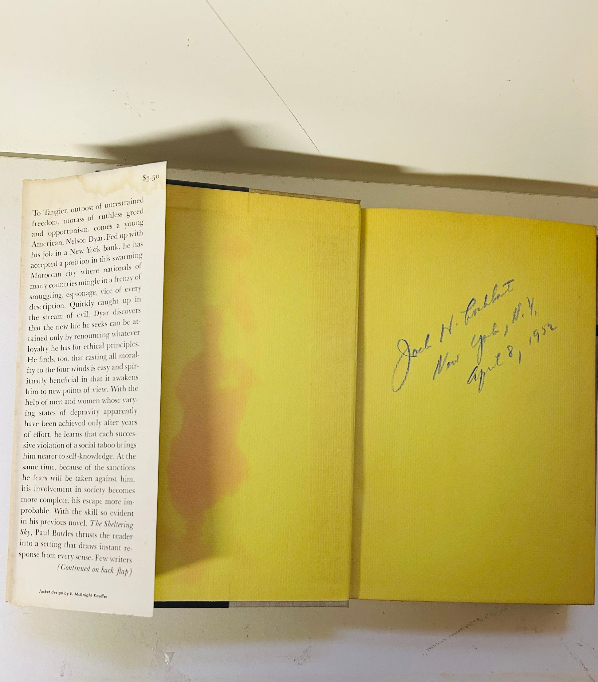 Paul Bowles. First American edition, stated first printing. New York: Random House, 1952. The unclipped dust jacket is in Good+ condition. There is some foxing and staining on outside/inside jacket cover. In the original unclipped ($3.50) pictorial dust jacket designed by the great E. McKnight Kauffer. Hardcover is in Very Good+ condition. Has former owner signature on inside page, otherwise, no markings or writing found in the book, 311 pp. Pages are bright and clean throughout.