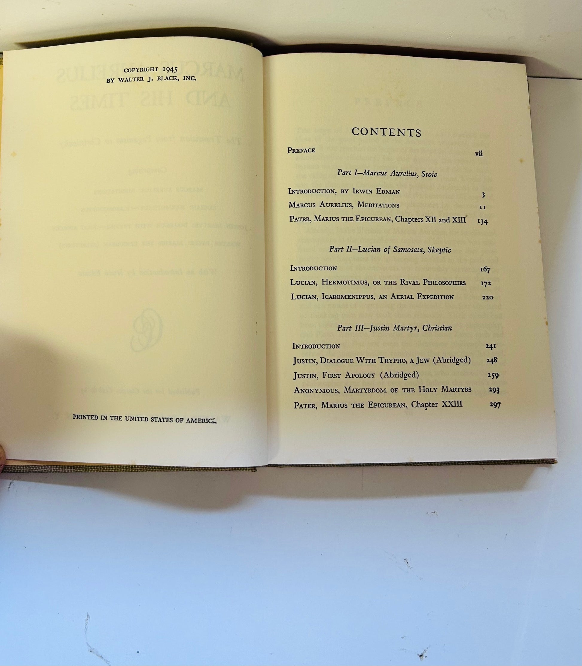 Marcus Aurelius. First edition thus. NAP. New York: Walter J. Black, 1945. No dust jacket. Hardcover is in Near Fine condition. No writing or markings found in this well-preserved copy, 306 pp. Wirh an introduction by Erwin Edman.