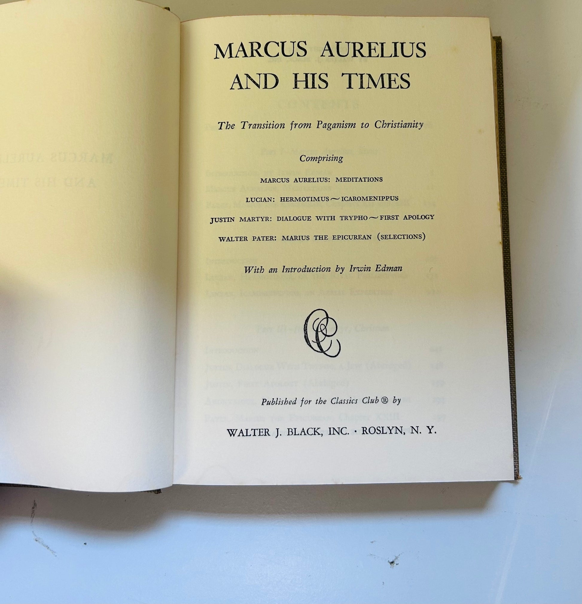 Step into the golden age of Stoic philosophy with Marcus Aurelius and His Times, published in 1945 by Walter J. Black as part of the publisher’s Classics Club series. This handsome near fine hardcover edition—sans dust jacket—is a timeless collection featuring the Meditations of Marcus Aurelius along with writings from key Roman thinkers such as Epictetus and Seneca.
