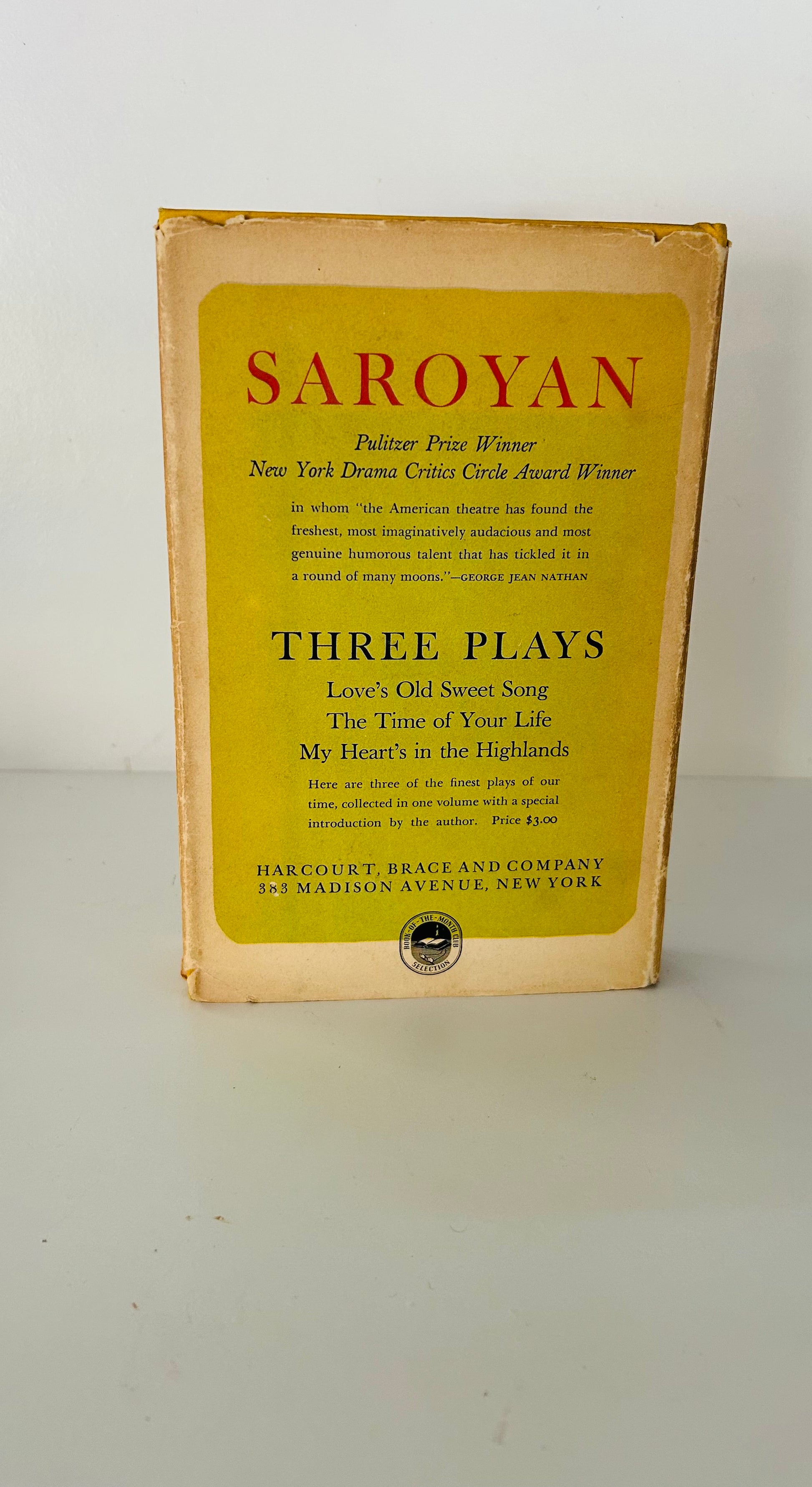 William Saroyan. Book club edition. First edition, later printing. New York: Harcourt, Brace and Company, 1940. Both unclipped dust jacket (no price on inside flap) and hardcover are in Very Good condition. No markings or writing found in the book, other than former owner signature on flyleaf page, 220 pp.