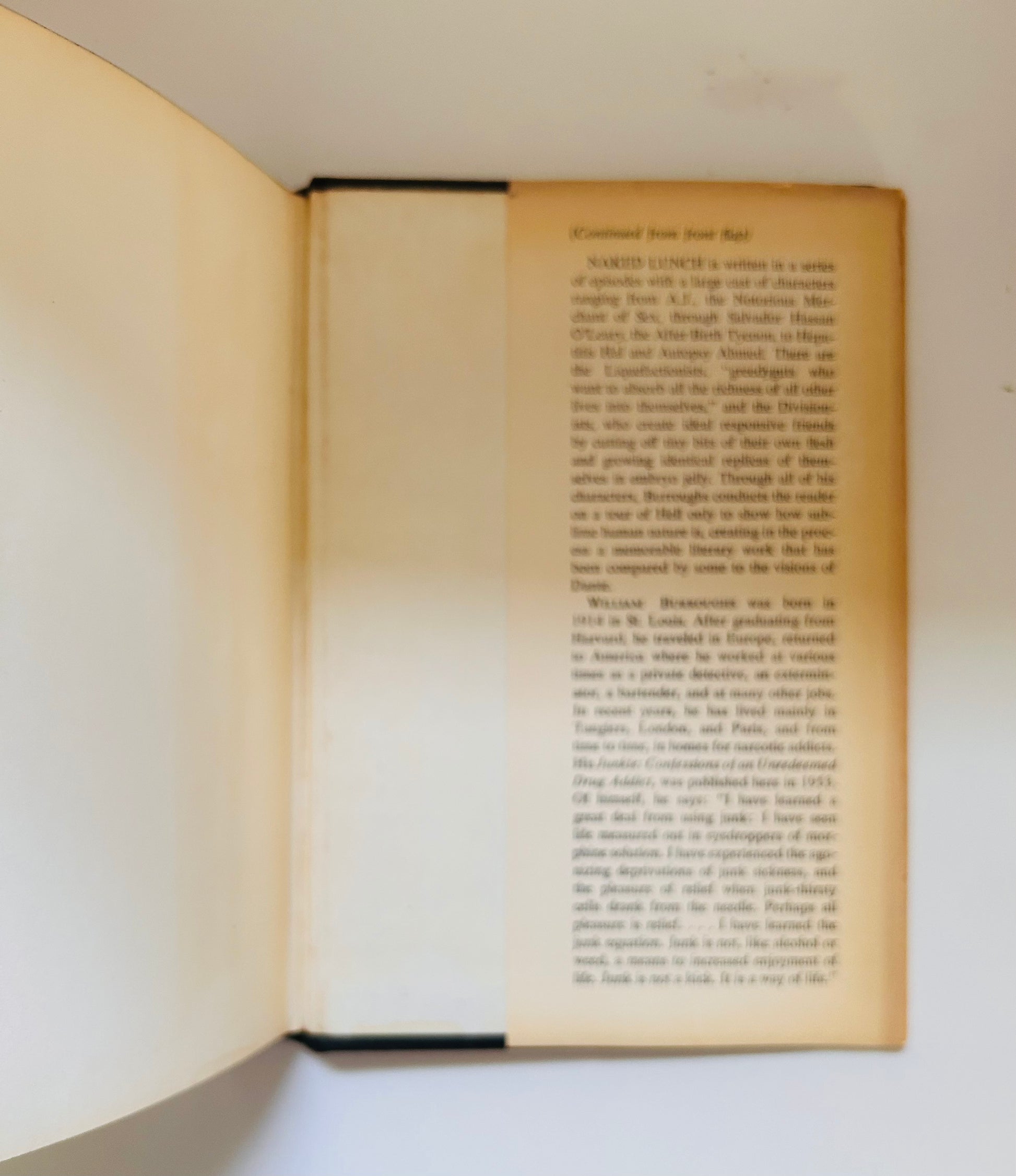 William S. Burroughs. First edition, seventh printing (stated). New York: Grove Press, 1959. Dust jacket is in Very Good condition and unclipped with original price $6.00 on inside flap. There is chipping along the edges of jacket. Hardcover is in Very Good+ condition.