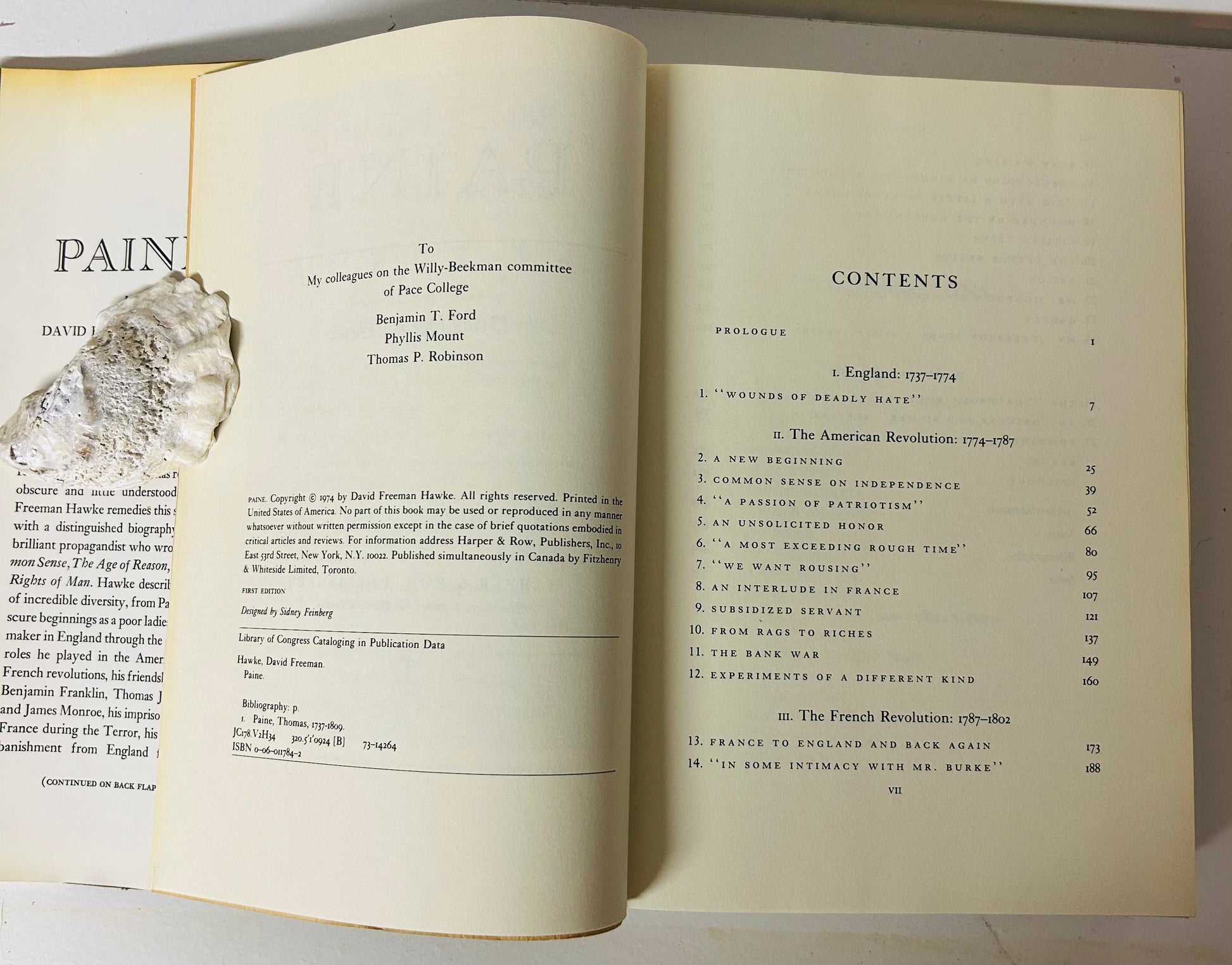 David Freeman Hawk. Stayed first edition, first printing. New York: Harper and Row Publishers, 1974. Both unclipped dust jacket and hardcover are in Very Good condition. There is a black mark on two pages towards end of the book with a few dog ear pages. This does not effect reading any of the pages though. The front flyleaf has a bookplate (Merle E. Bredwell).