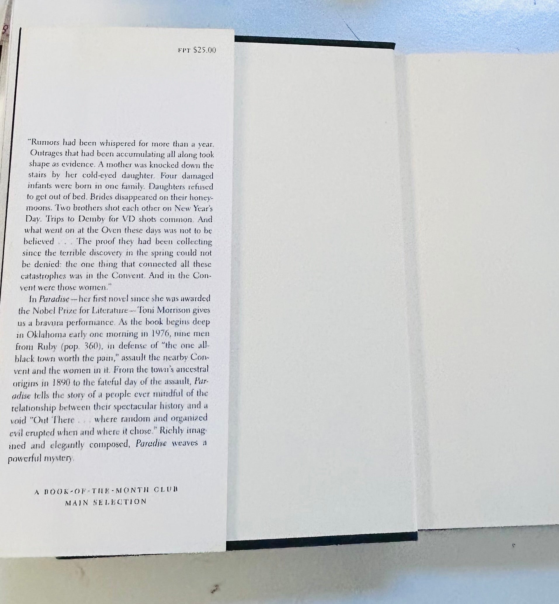 Paradise—Morrison’s first novel after winning the Nobel Prize in Literature—explores the complex dynamics of an all-Black town in Oklahoma, confronting themes of race, gender, community, and violence. The novel’s powerful, lyrical prose cements Morrison’s place among America’s greatest writers.