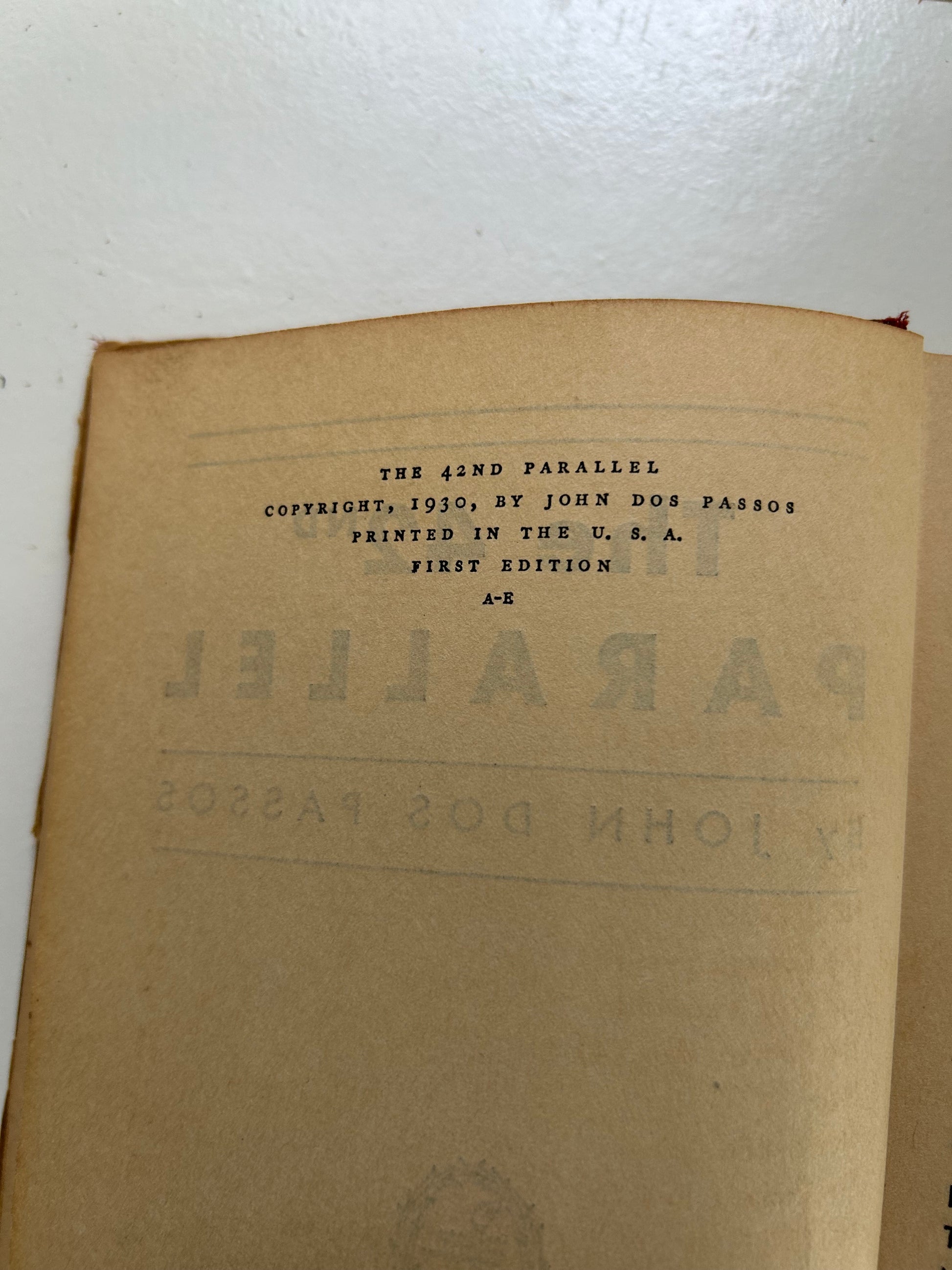 The first installment in Dos Passos' masterpiece U.S.A. trilogy. While copies of 1919 and Big Money are still able to be sourced, copies of The 42nd Parallel have become increasingly uncommon especially in the original dust jacket.