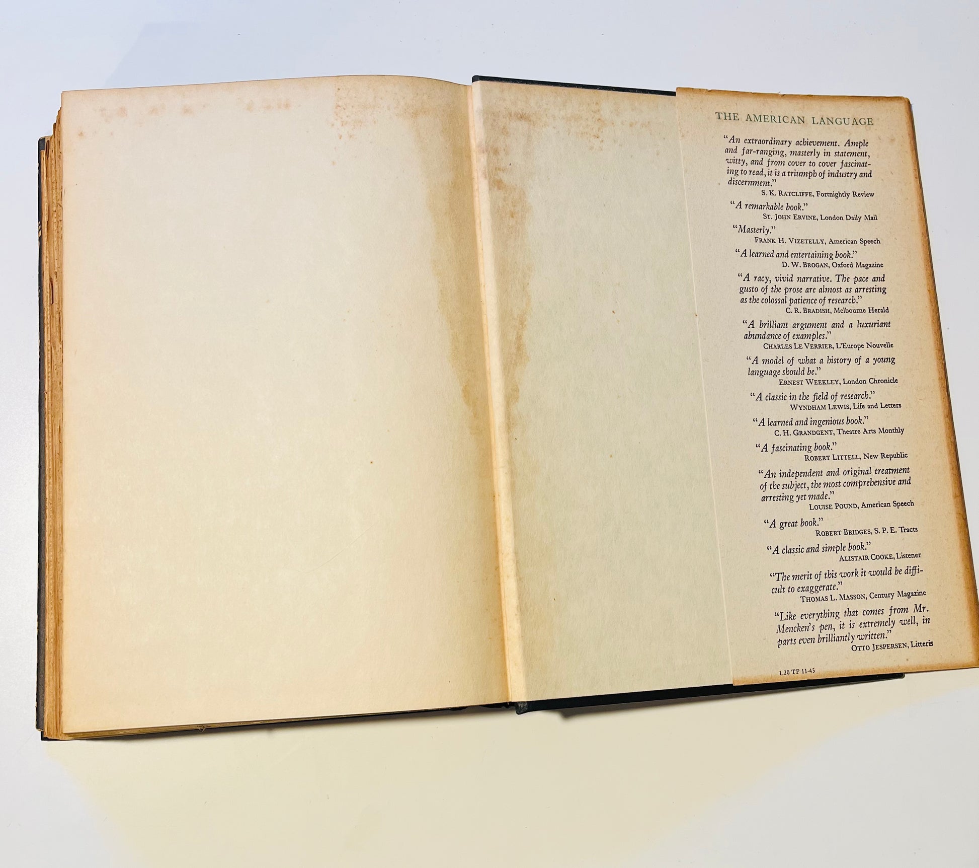 An Inquiry Into the Development of English in the United States. Mencken's work was originally published in 1919 with a publication run of 1500.