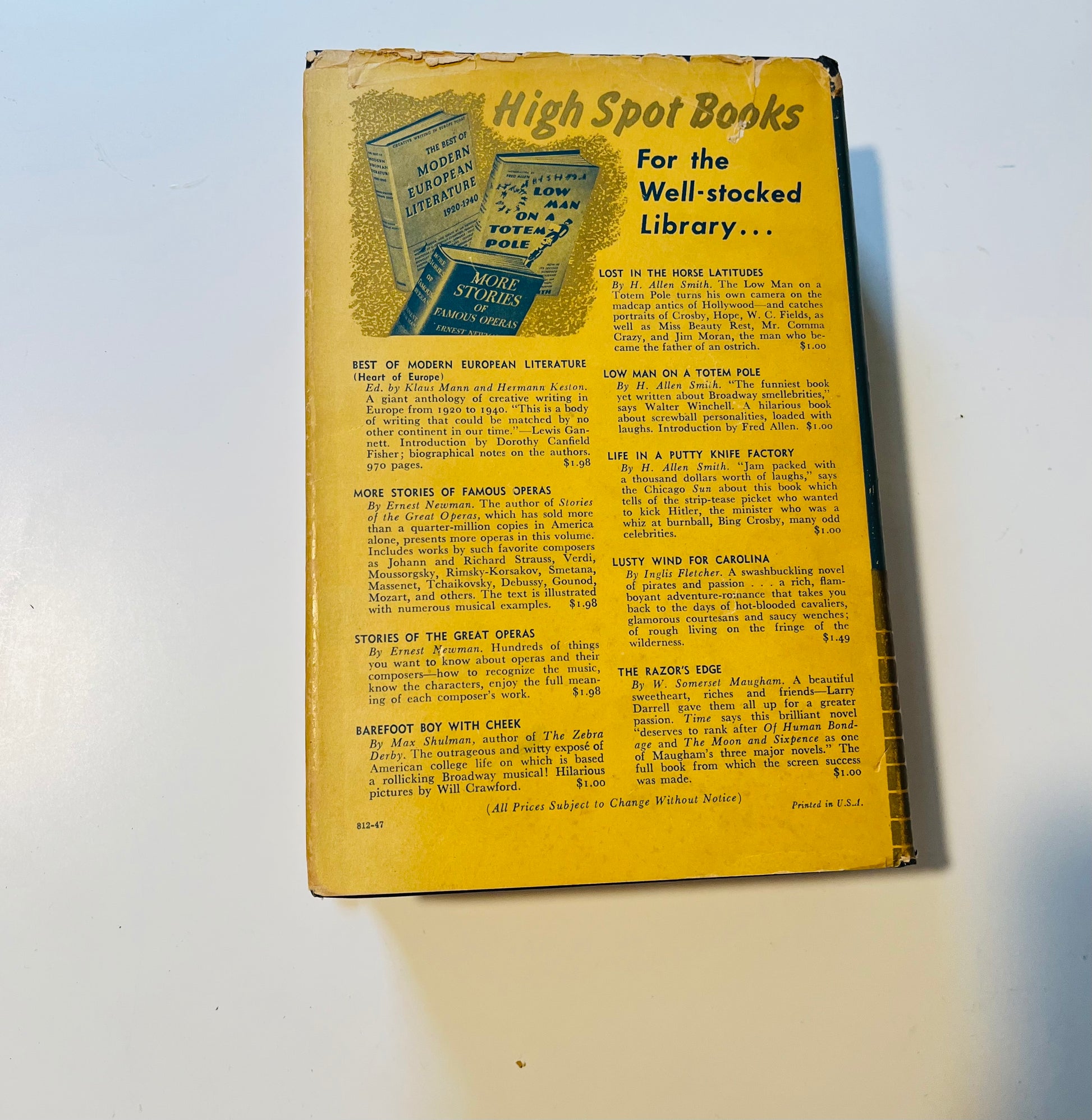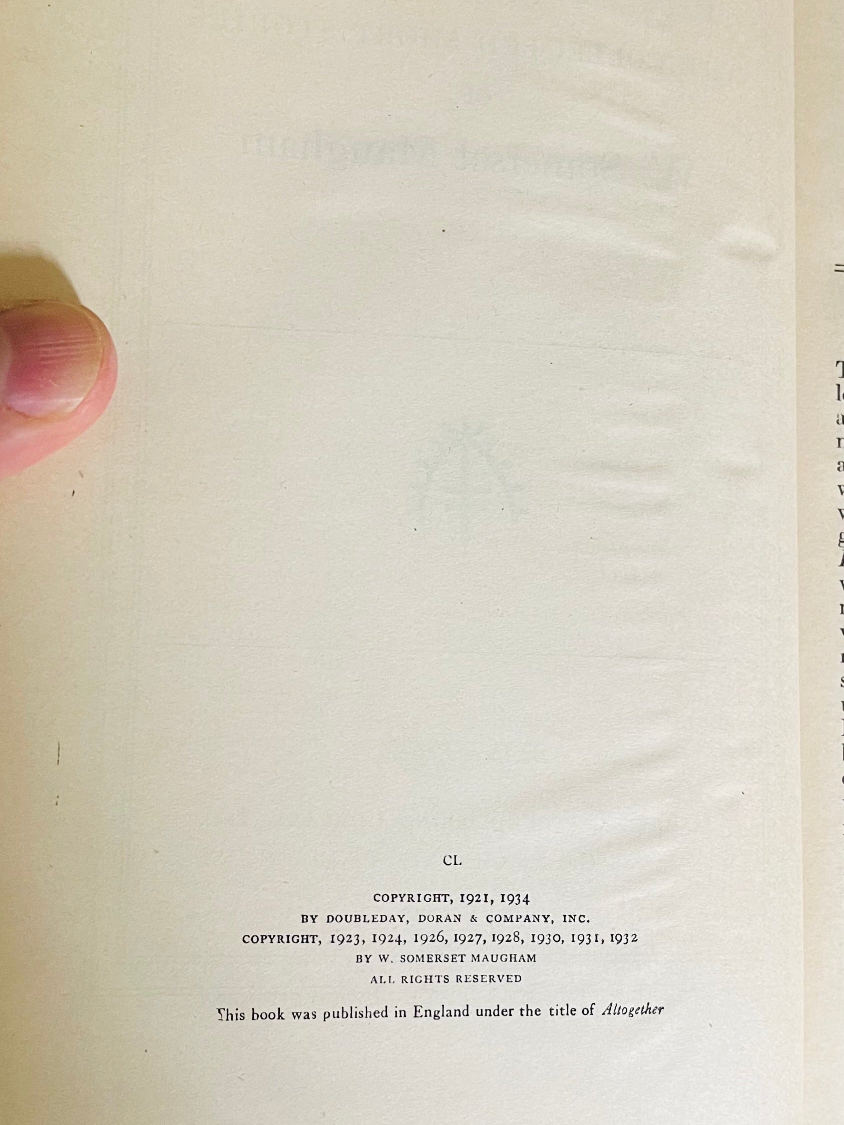 W. Somserset Maugham. Dust Jacket: Very Good. Hardcover: Very Good+ New York: Garden City Publishing Company, 1934. No writing or markings in the book, 935 pp.