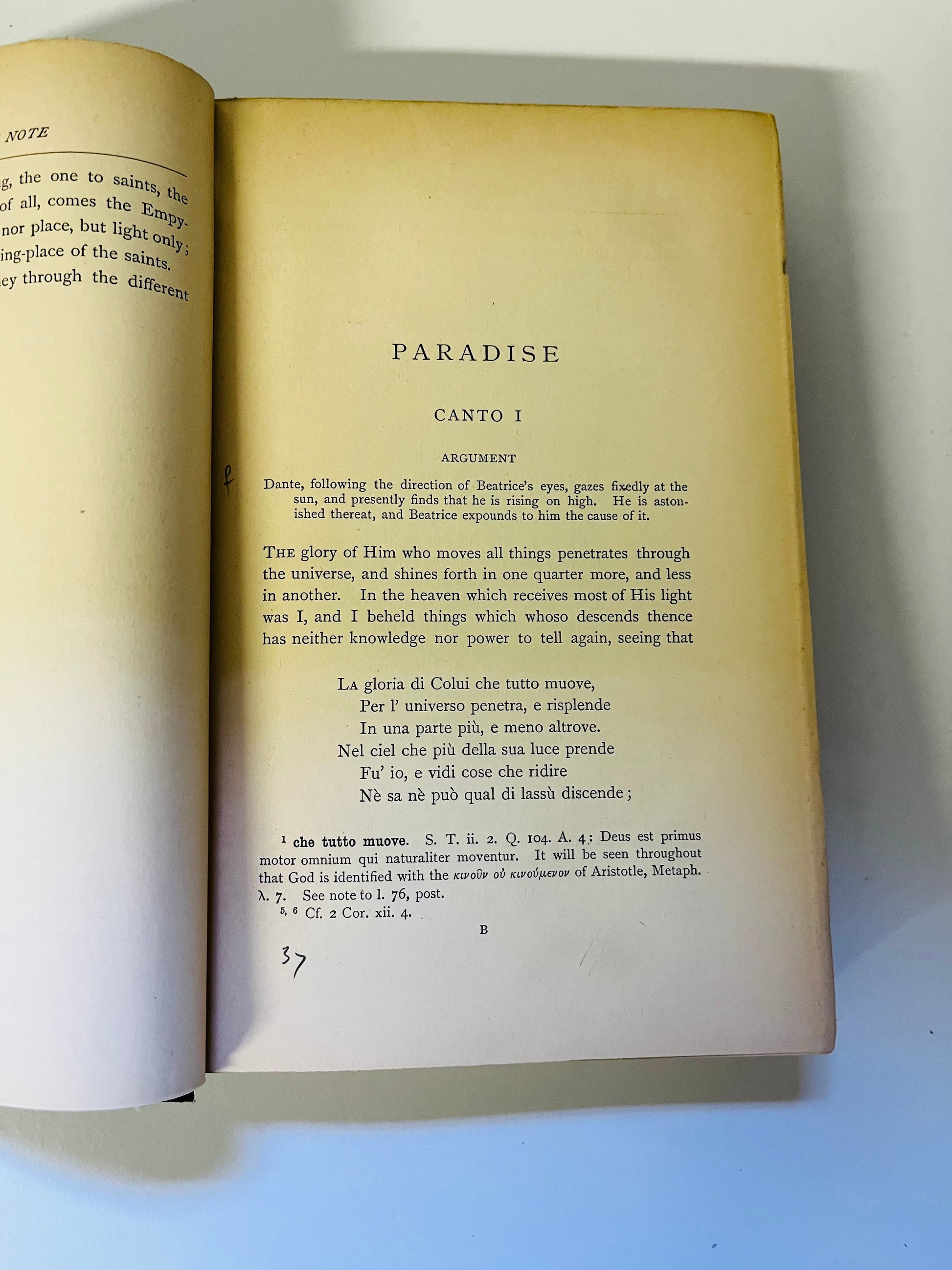 The Paradise of Dante Alighieri. London: Macmillan and Company, 1891. No writing or markings in the book, 430 pp.