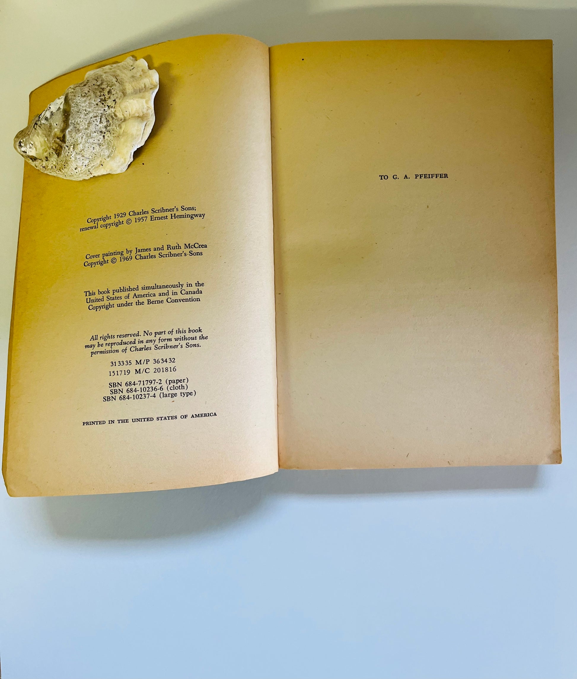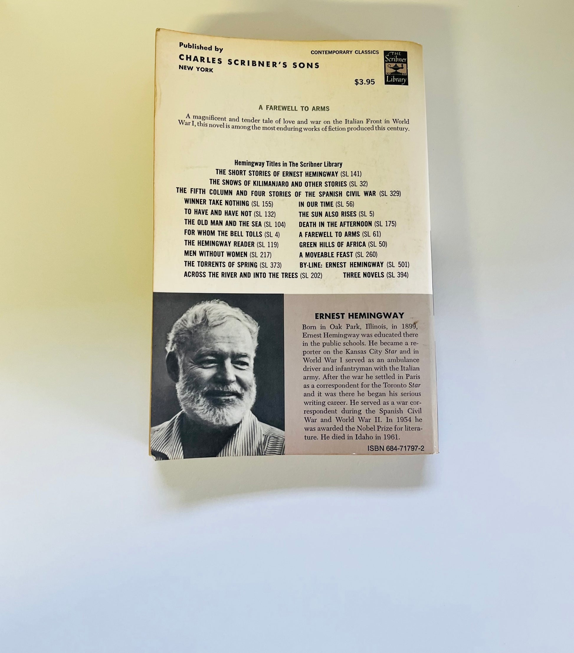 Ernest Hemingway. Softcover. New York: Charles Scribner's Sons, 1969. No writing or markings in the book, 332 pp. Some of the pages have foxing but a solid book that has maintained well.