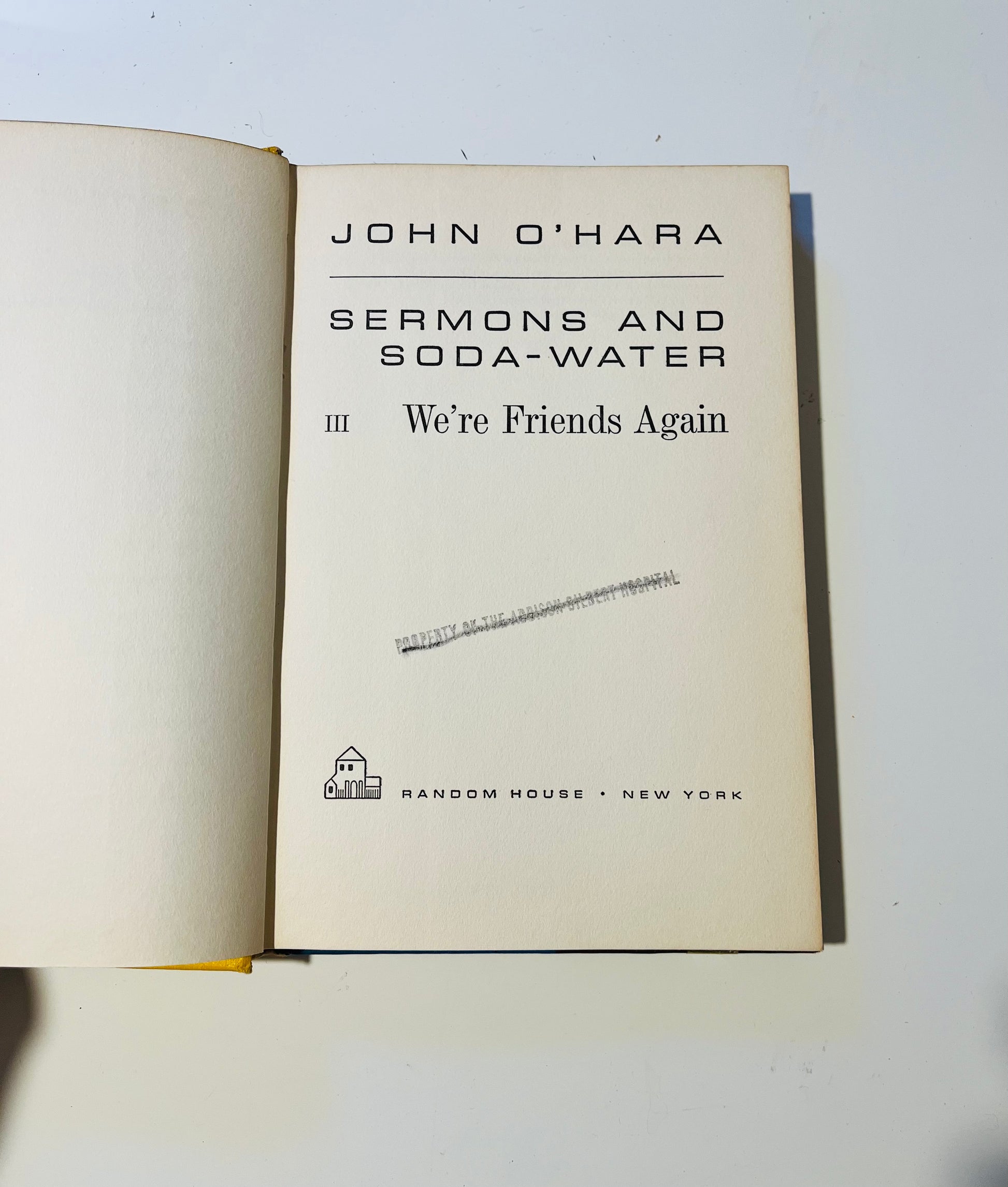 John O'Hara. Stayed first edition. Dust Jacket: None. In mylar protective wrapper. Hardcover: Very Good+ New York: Random House, 1960. Has a few pieces of tape residue from protective wrapper. Also has a previous owner imprint on tile page. Otherwise, no markings or writing in the book, 110 pp.