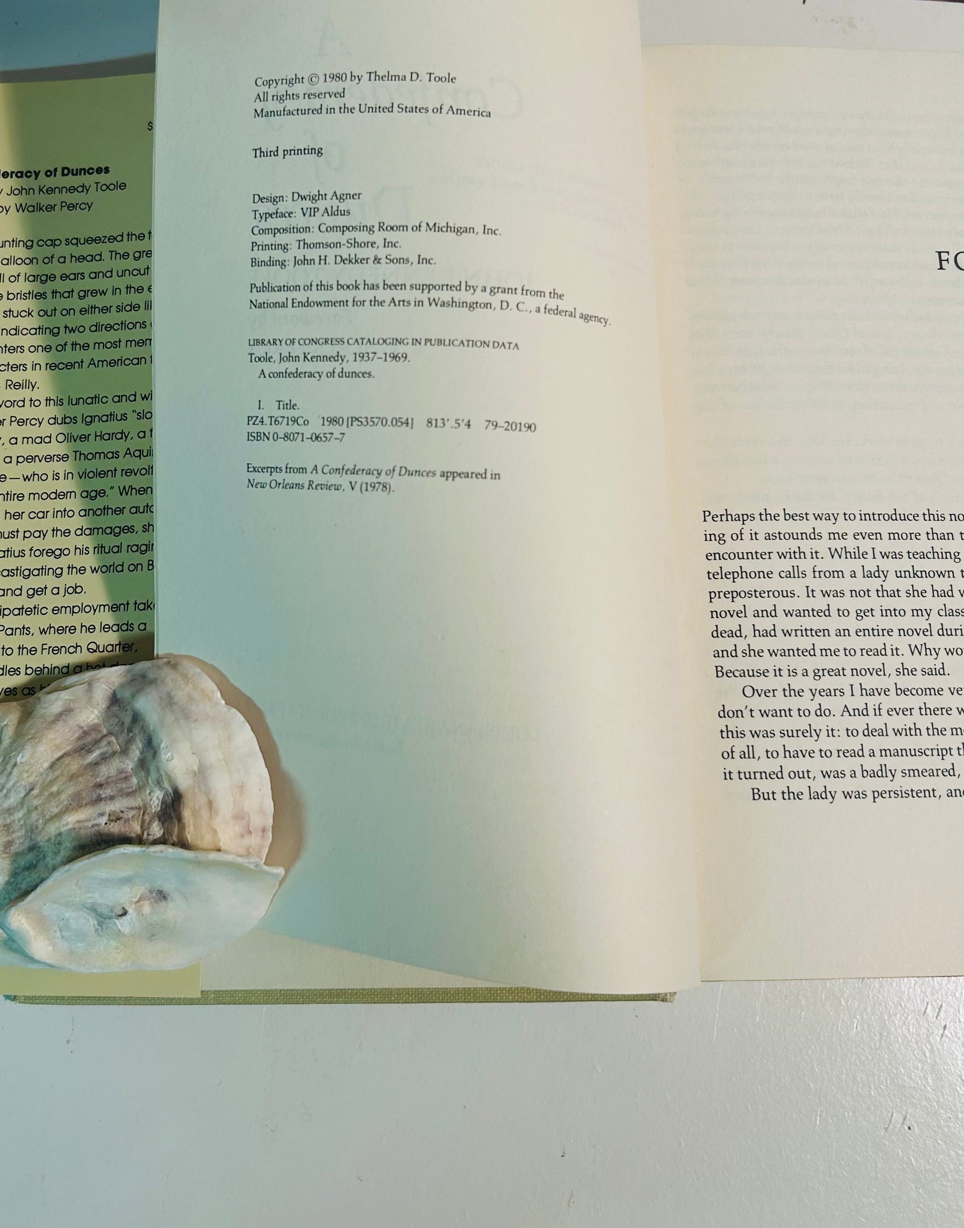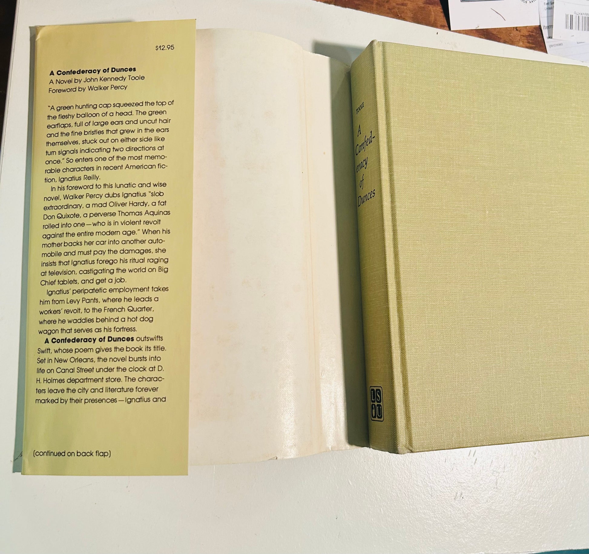 John Kennedy Toole. First edition, stated third printing. Foreword by Walker Percy. Both unclipped dust jacket and hardcover are in Very Good+ condition. No writing or markings found in the book, 338 pp. Jacket design by Ed Lindlof.