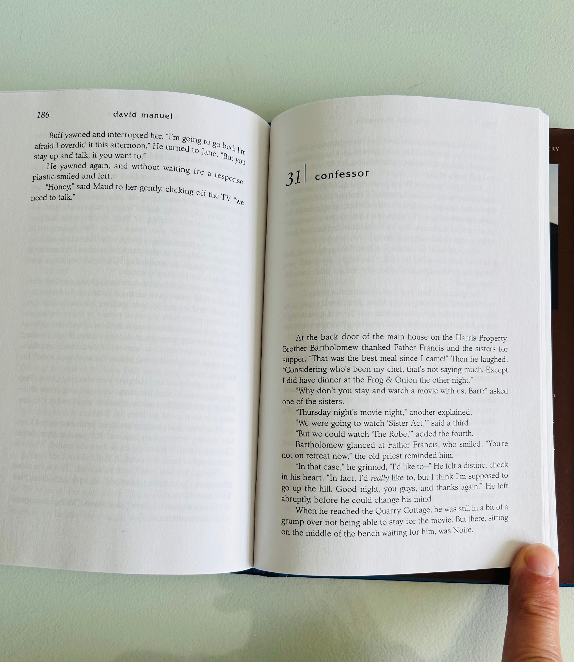 David Manuel. First edition, first printing. Inscribed by the author. Brewster, MA: Paraclete Press, 2002. Both inclipped dust jacket and hardcover are in Near Fine condition. No writing or markings, other than the authors inscription on the title page, 255 pp. A Faith Abby Mystery.