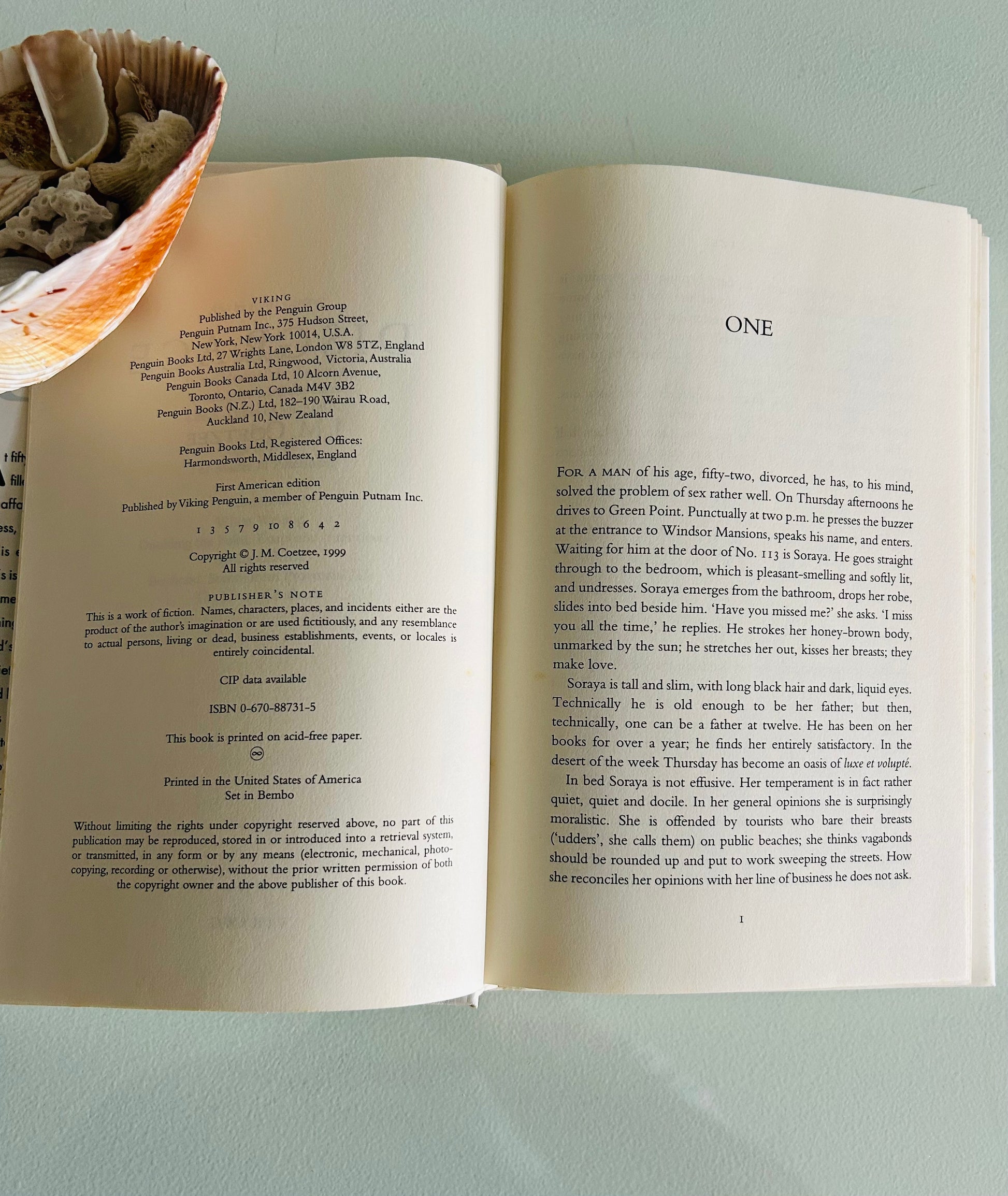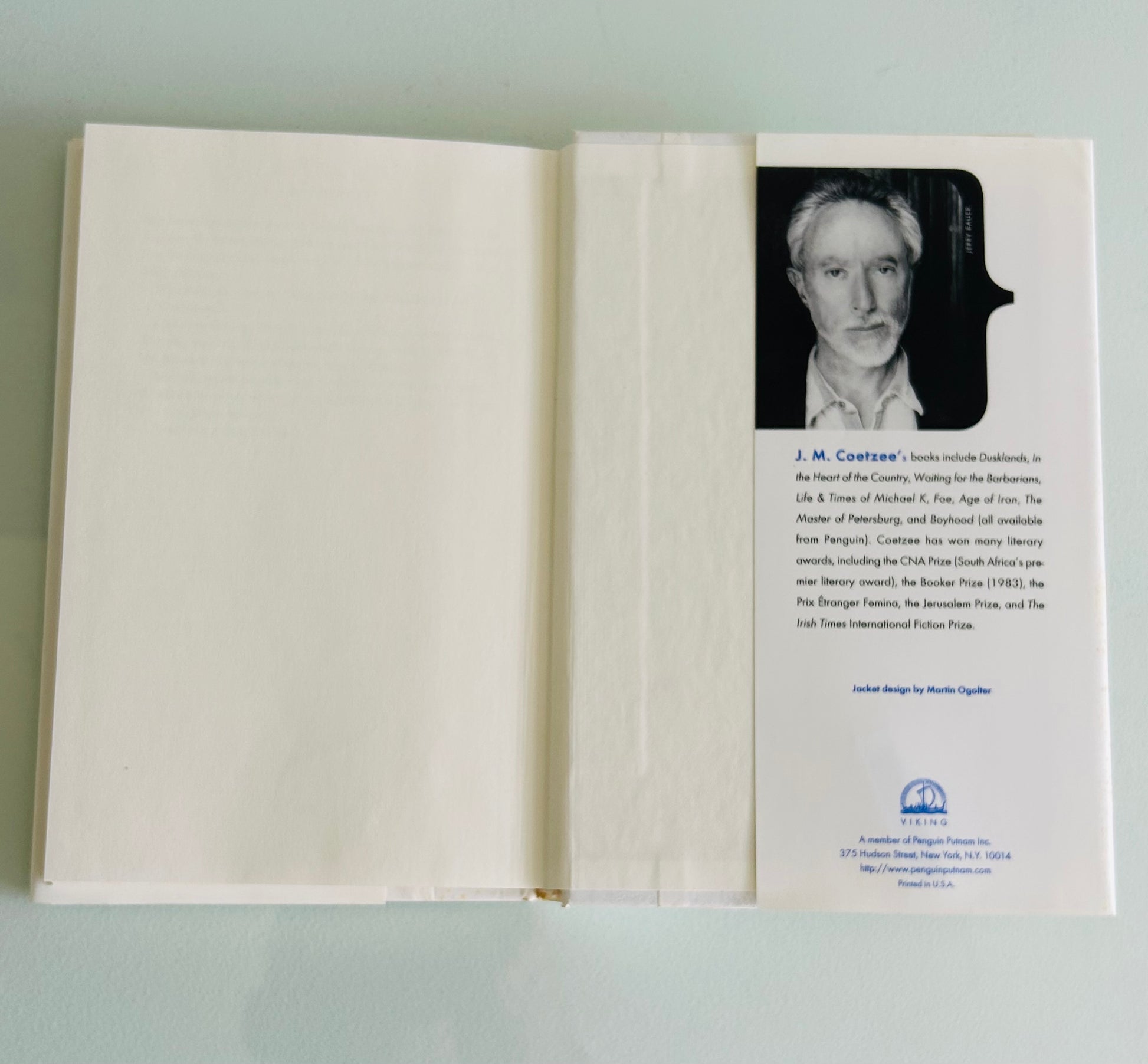 J.M. Coetzee. Stated first American edition, first printing. New York: Viking, 1999. Both unclipped dust jacket and hardcover are in Very Good+ condition. No writing or markings, other than a former owner signature, on flyleaf page. Jacket design by Martin Ogolter.