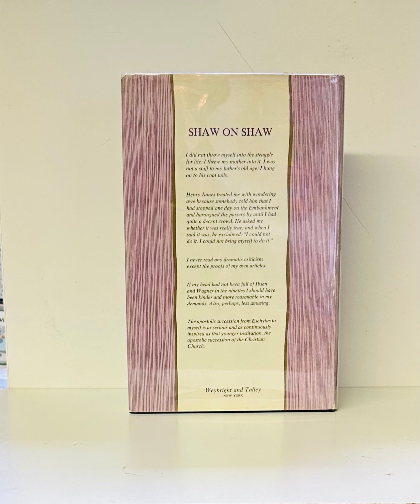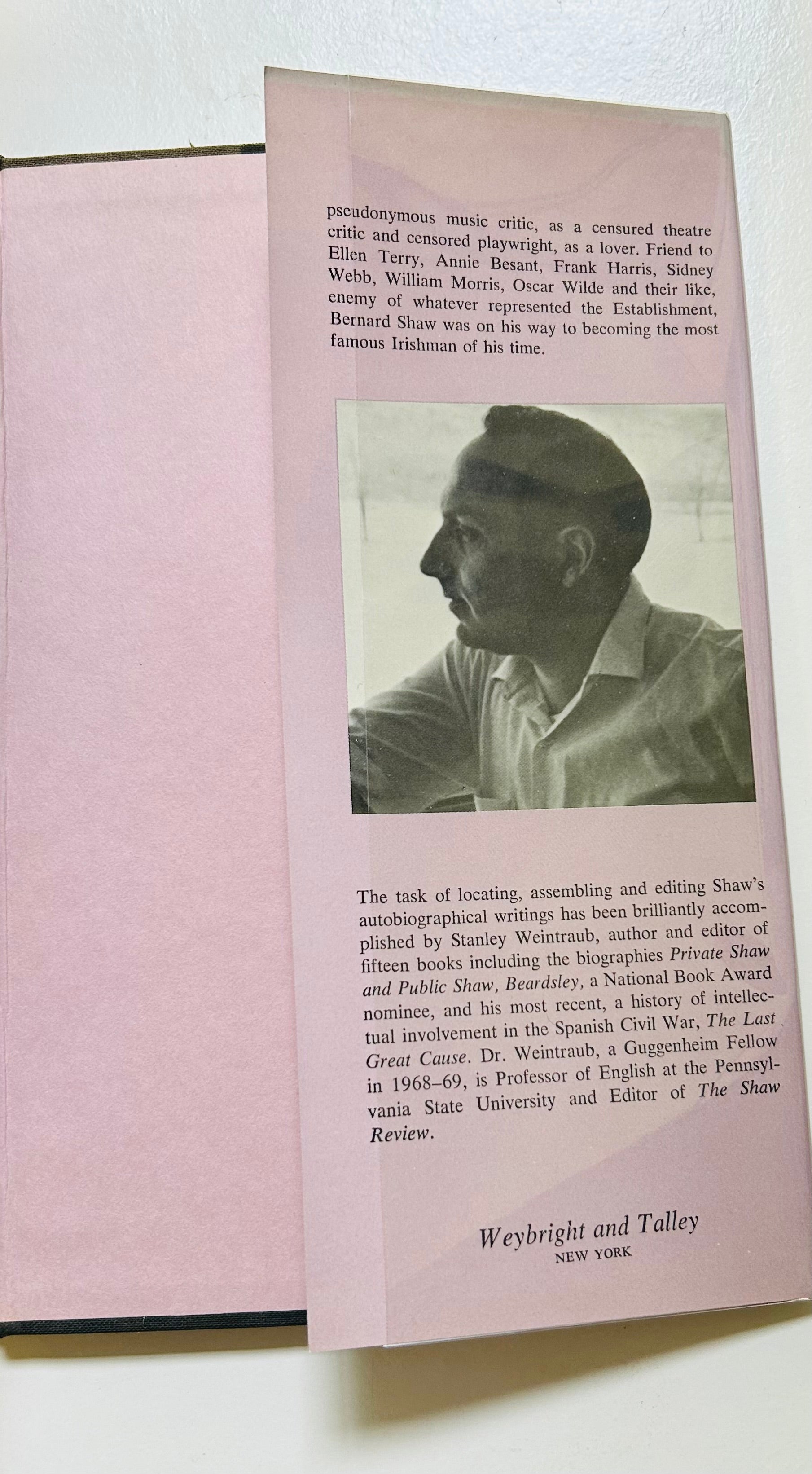 Stanley Weintraub. First edition m. NAP. New York: Weybright and Talley, 1969. Both unclipped dust jacket (in a mylar wrapper) and hardcover are in Near Find condition. No writing or markings found in this well preserved copy, 336 pp.