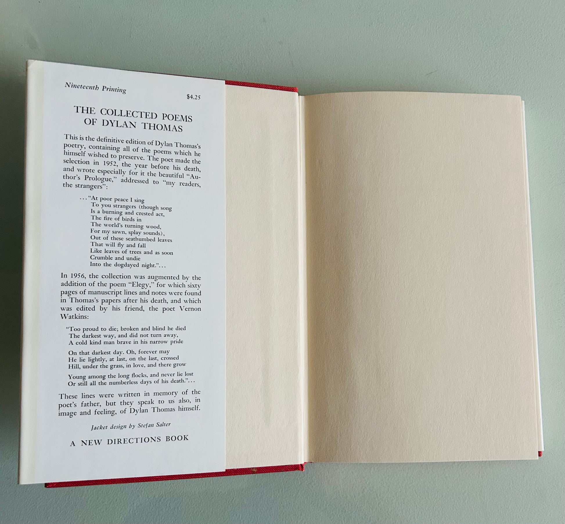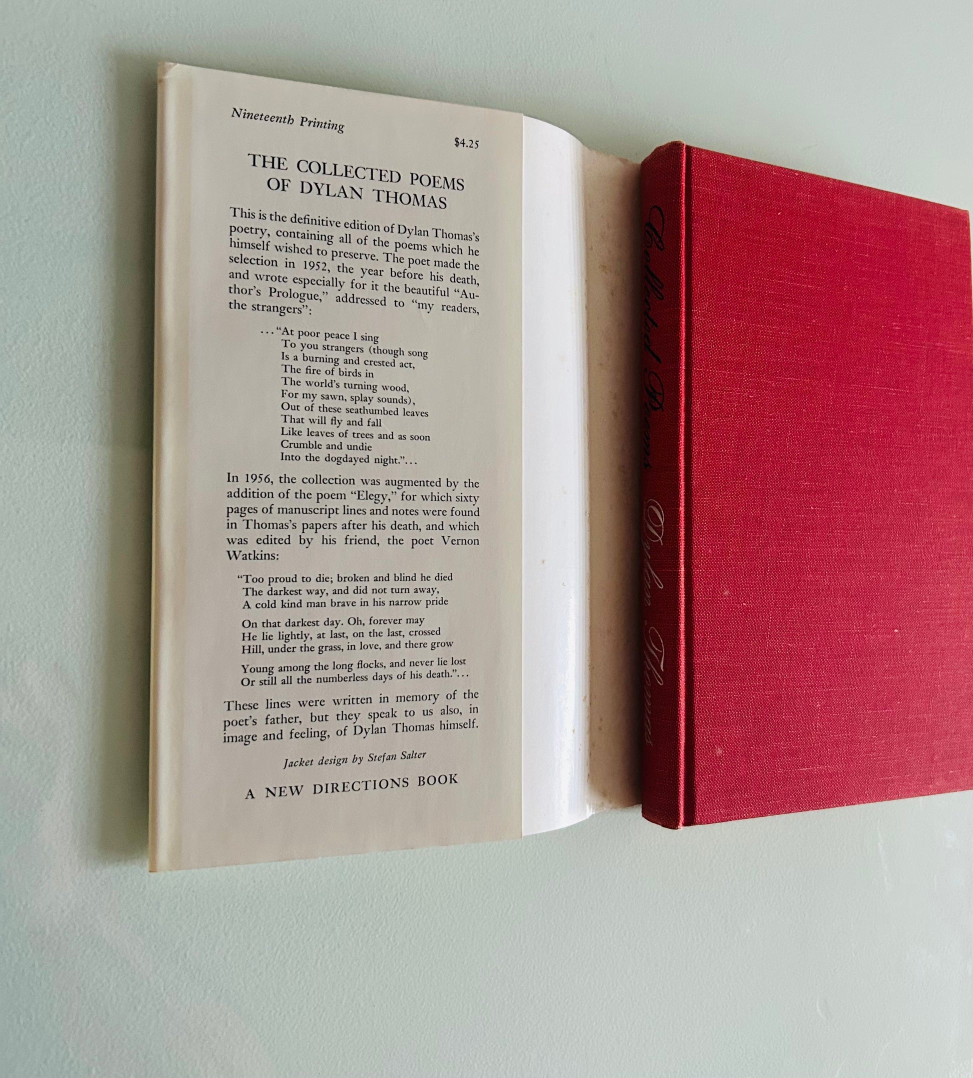 Dylan Thomas. First edition, stated nineteenth printing. New York: A New Direction Book, 1957. Unclipped dust jacket is in Very Good condition. Hardcover is in Very Good+ condition. No writing or markings found in the book, 203 pp.