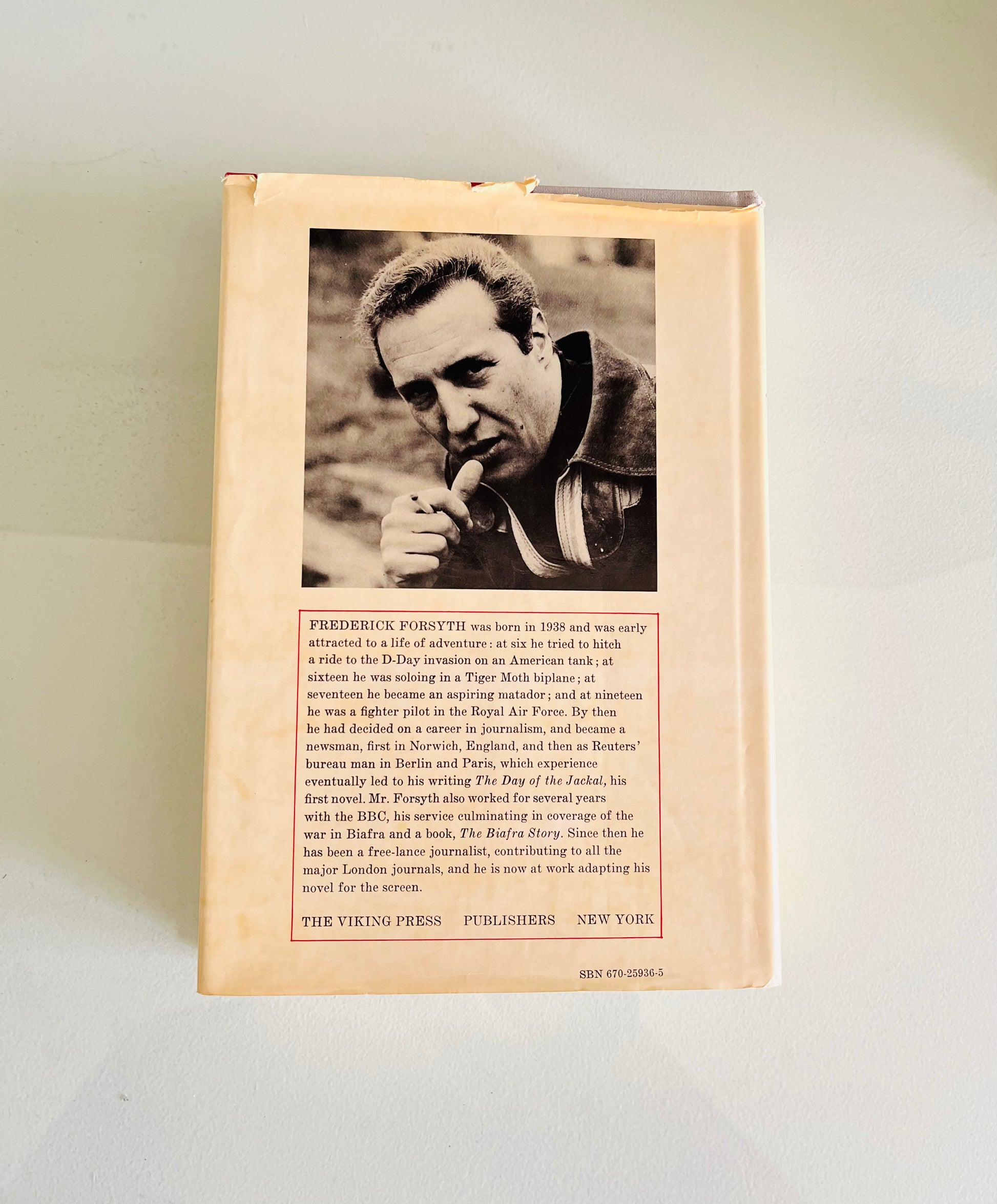 Frederick Forsyth. First edition, third printing. Dust Jacket: Very Good. An unclipped jacket ($7.95) designed by Paul Bacon. Has a small tear on front/bottom cover. Some chipping and wearing on spine and back cover. The jacket has 0871 as a date code.
