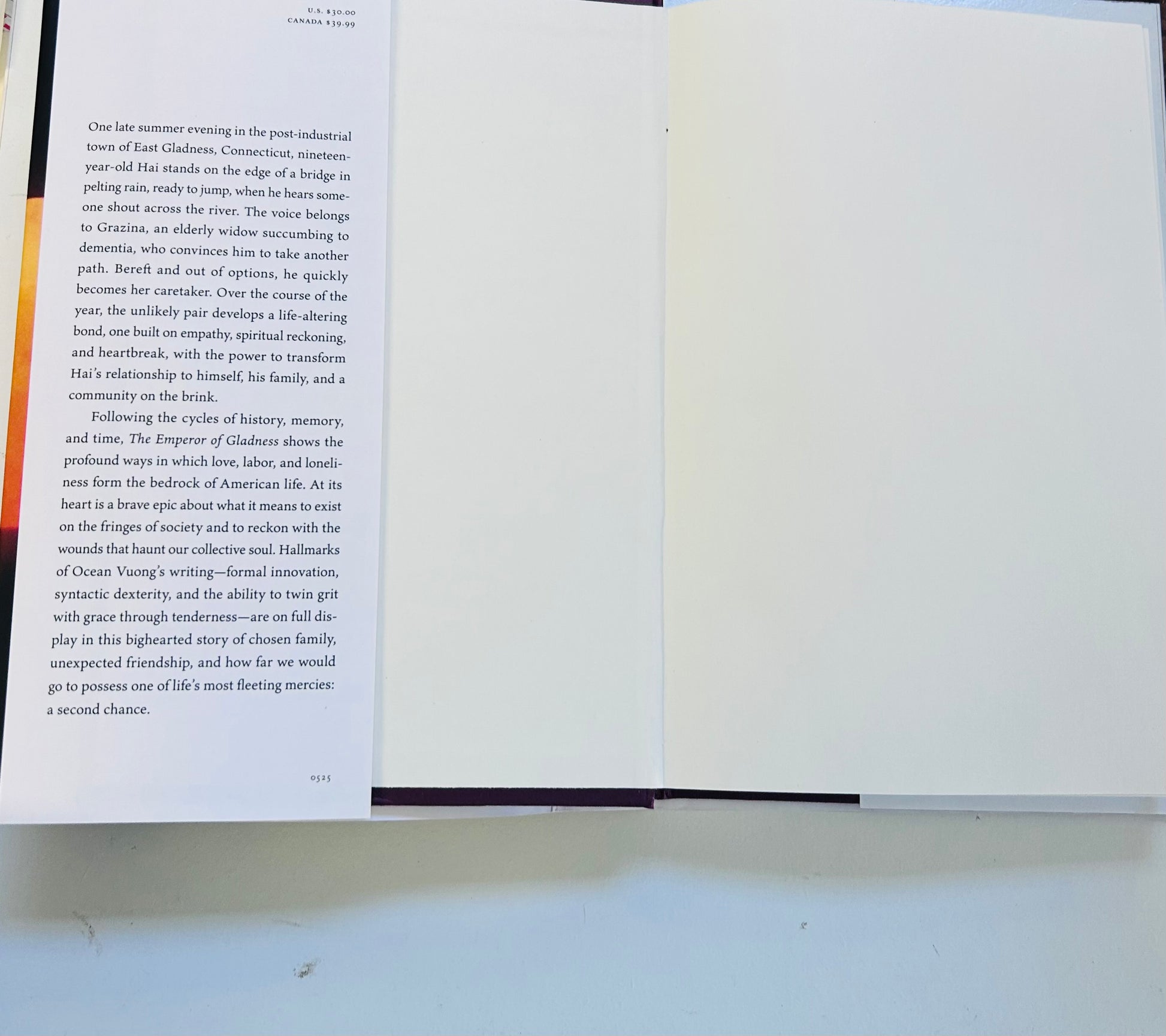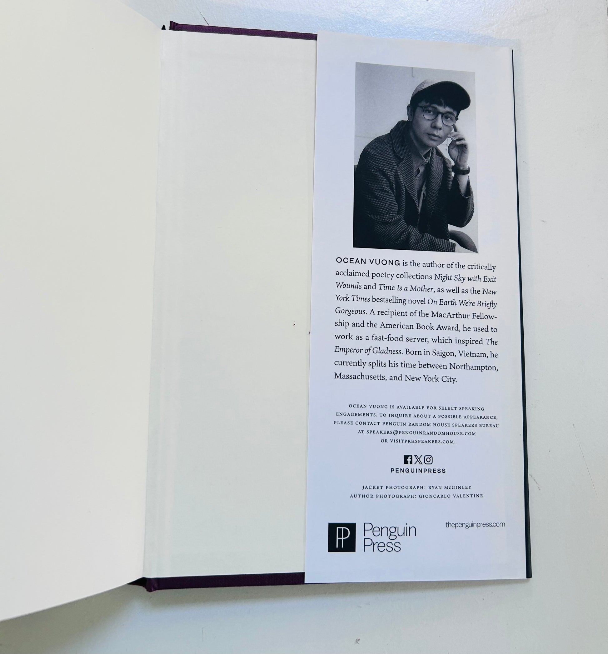 Ocean Vuong. First edition, first printing. New York: Penguin Press, 2025. Both unclipped dust jacket and hardcover are in Fine condition. No writing or markings found in this unread edition, 397 pp.