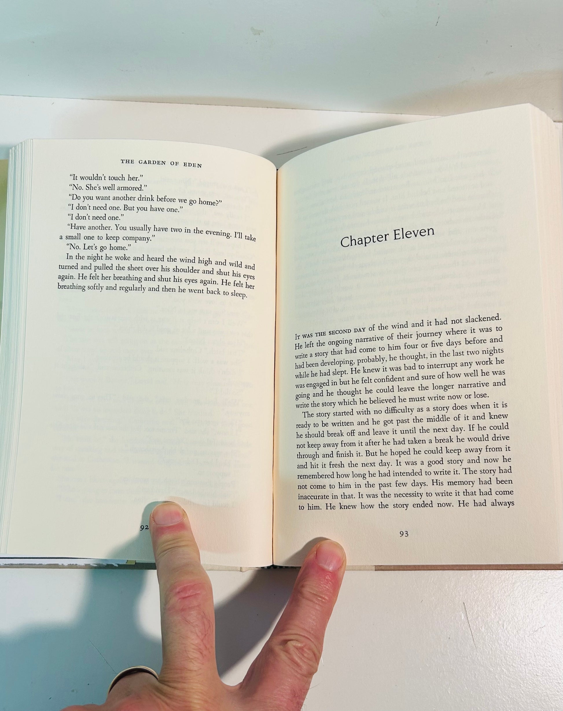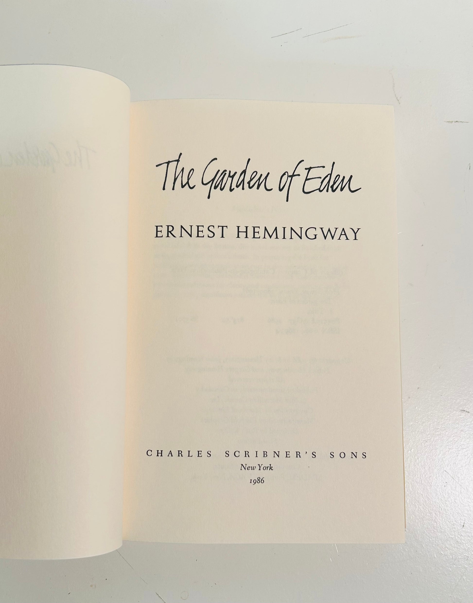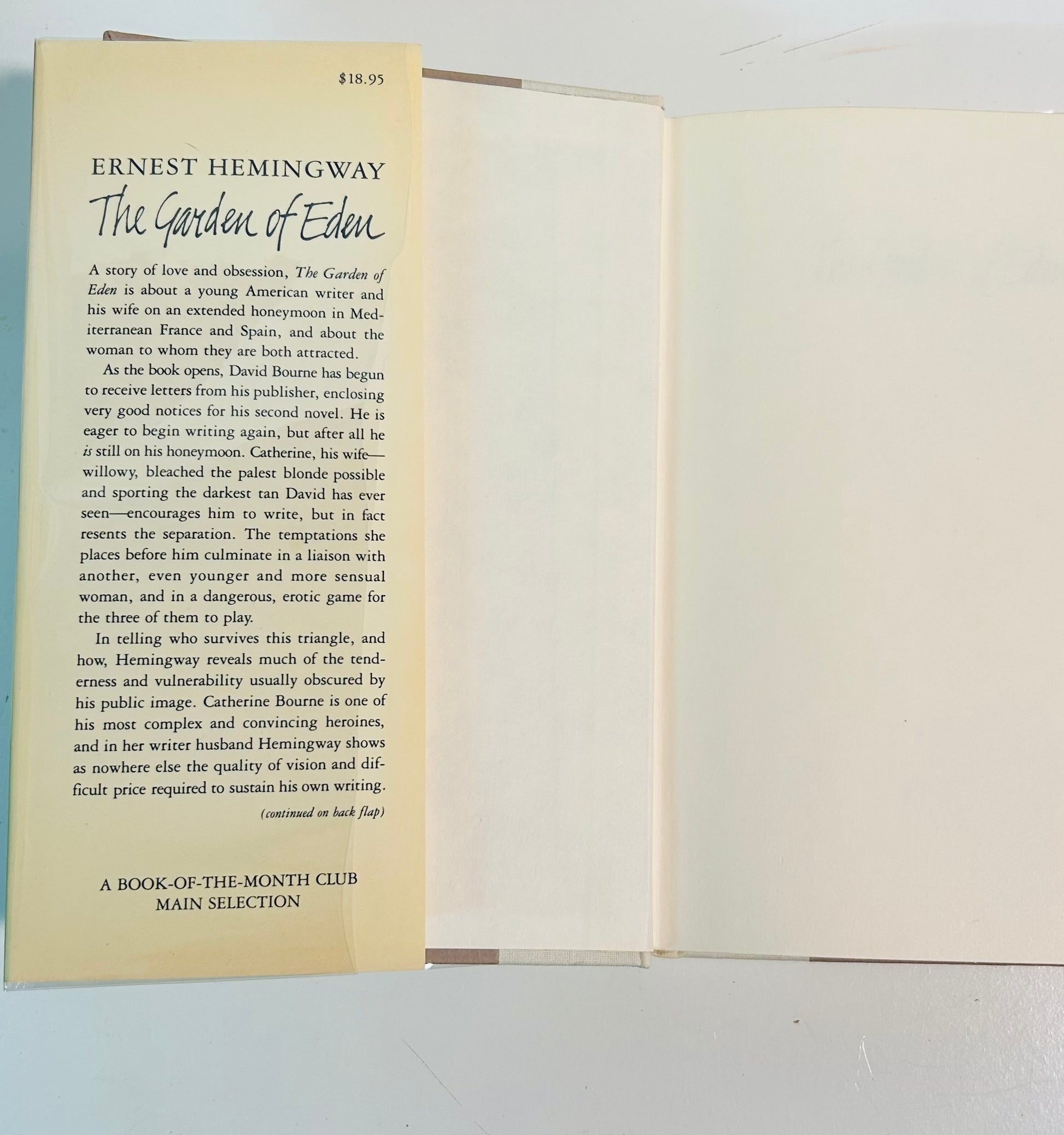 A Near Fine tight copy in a bright unclipped dust jacket. This posthumously published novel tells the story of a young American writer in Paris who has just published his second novel, is on an extended honeymoon on the French coast, the woman the couple is attracted to, and the erotic games the three of them play. The theme of bisexuality is the major reason this novel was published 24 years after Hemingway's death. The true test of the worthiness of this work of fiction is that the story, the characters and the writing hold up as a work by Hemingway.