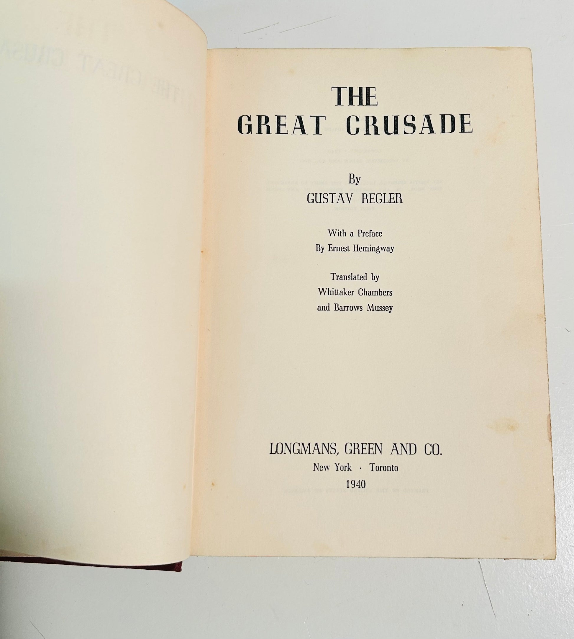 Ernest Hemingway and Gustav Regler met during the Spanish Civil War and became close friends. Hemingway admired Regler’s bravery and wrote the preface to The Great Crusade, calling him ‘one of the truest men I have ever known. The Hemingway preface stands as one of the strongest public endorsements he ever gave to a fellow writer.
