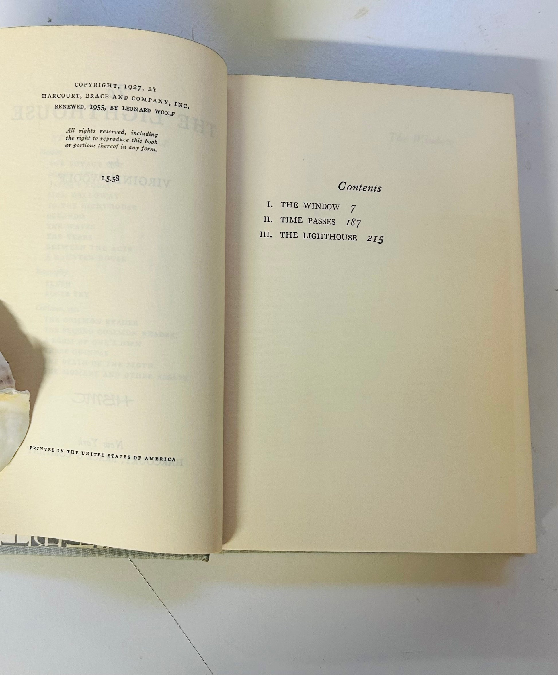 This 1958 Harcourt reissue retains its original dust jacket and classic typography, a perfect vintage reading copy for Woolf admirers or modernist collectors.